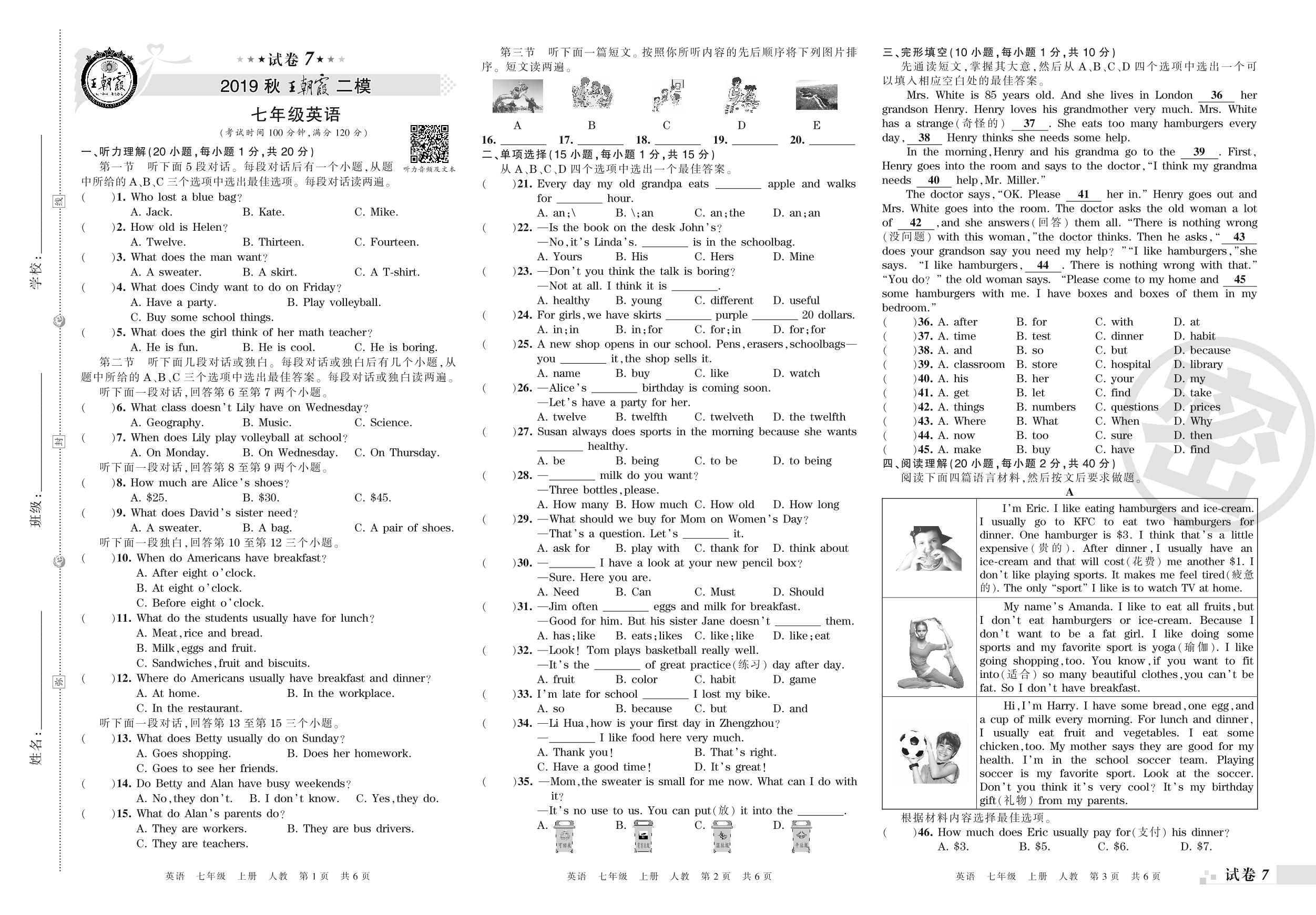 王朝霞期末模拟卷七年级上册英语(人教版)_R210807200146【7】