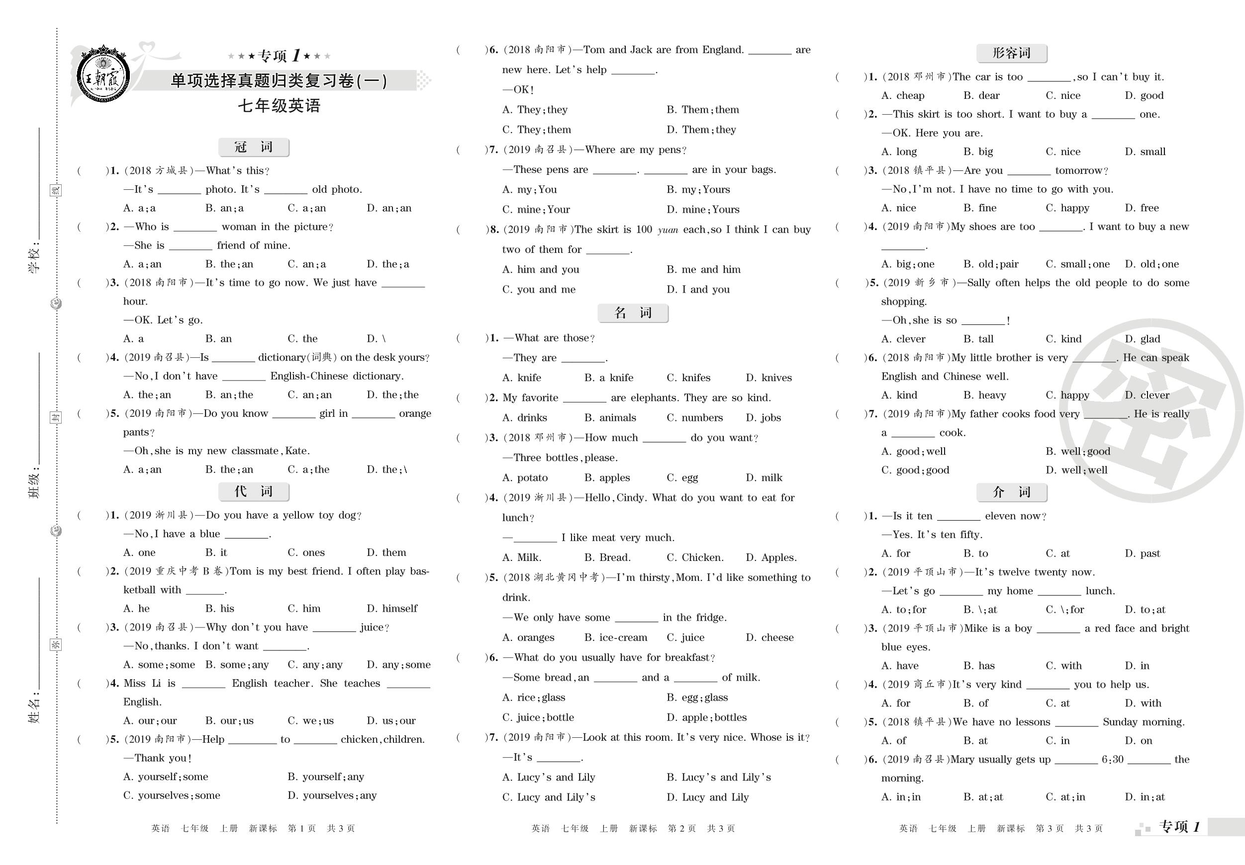 王朝霞期末专项卷——单项选择真题归类复习七年级上册英语(新课版)_R210807200313【0】