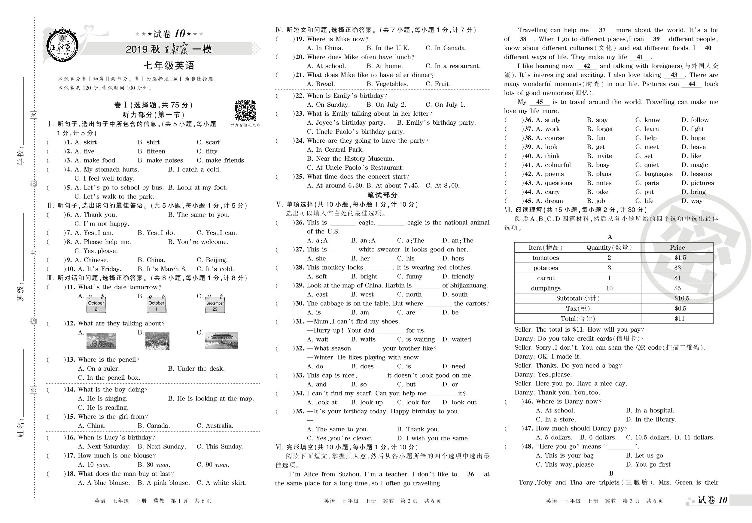 王朝霞期末模拟卷七年级上册英语(冀教版)_R210807200541【10】