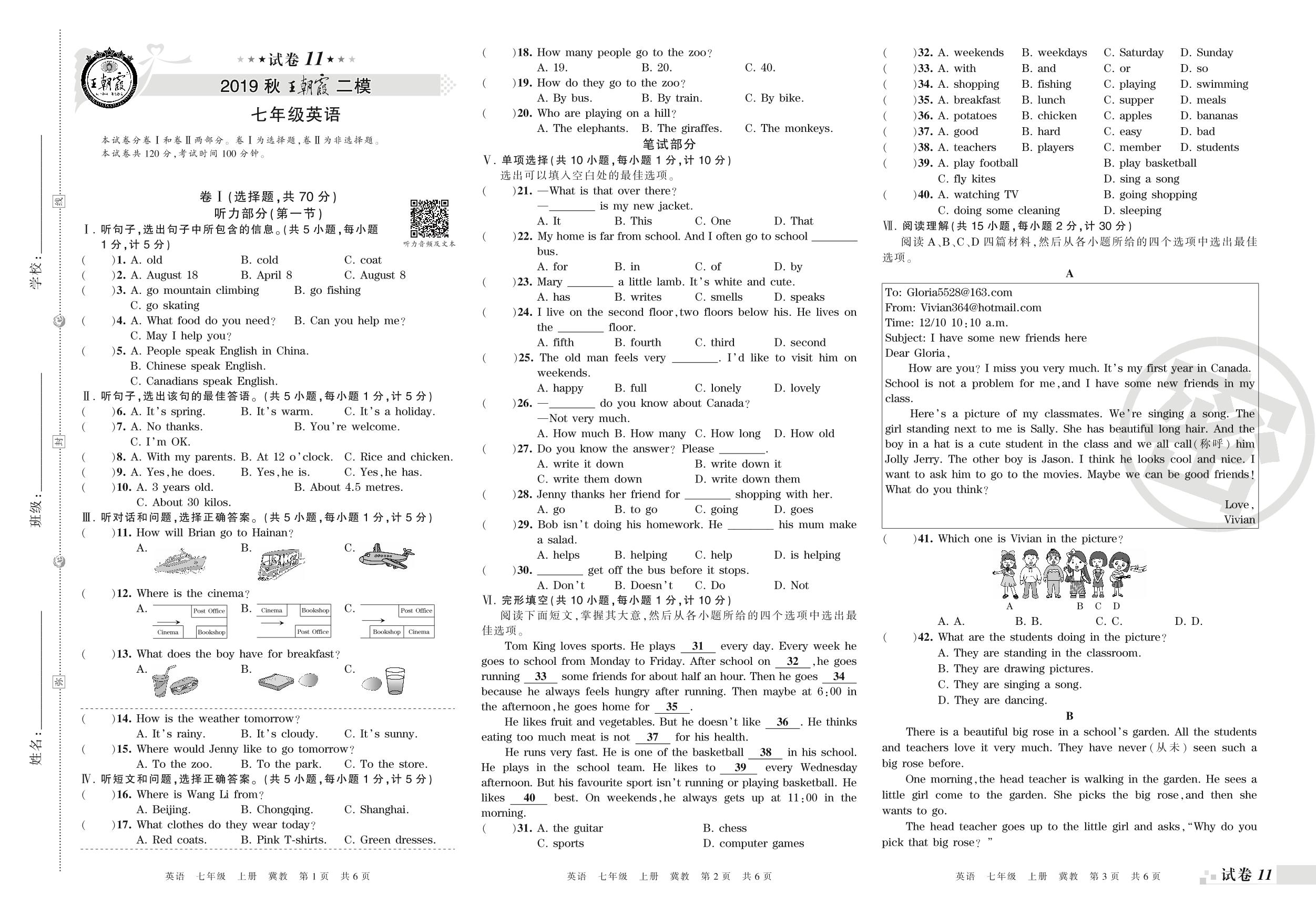王朝霞期末模拟卷七年级上册英语(冀教版)_R210807200548【11】
