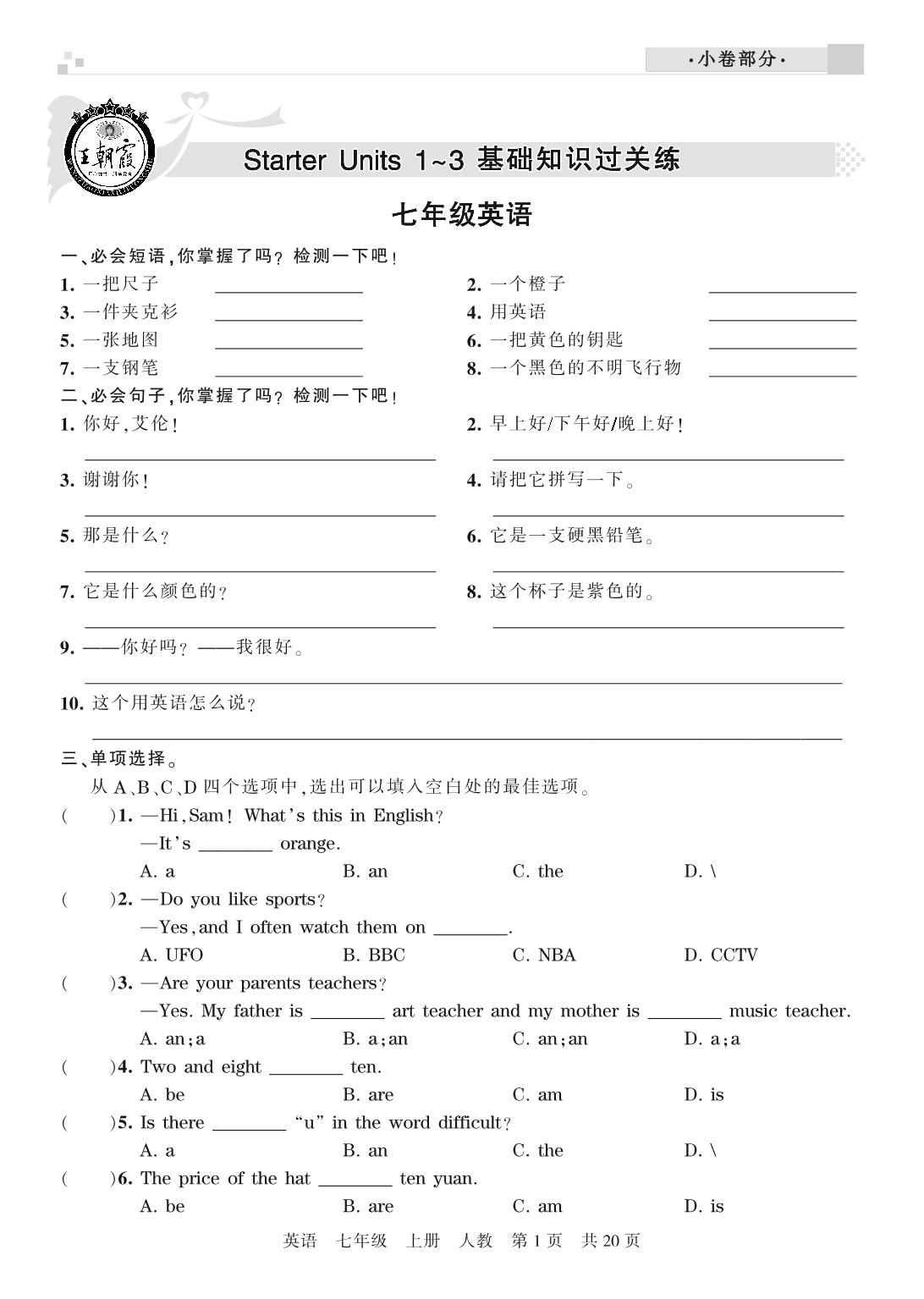 王朝霞期末小卷——基础知识过关练七年级上册英语(人教版)_R210807200555【0】