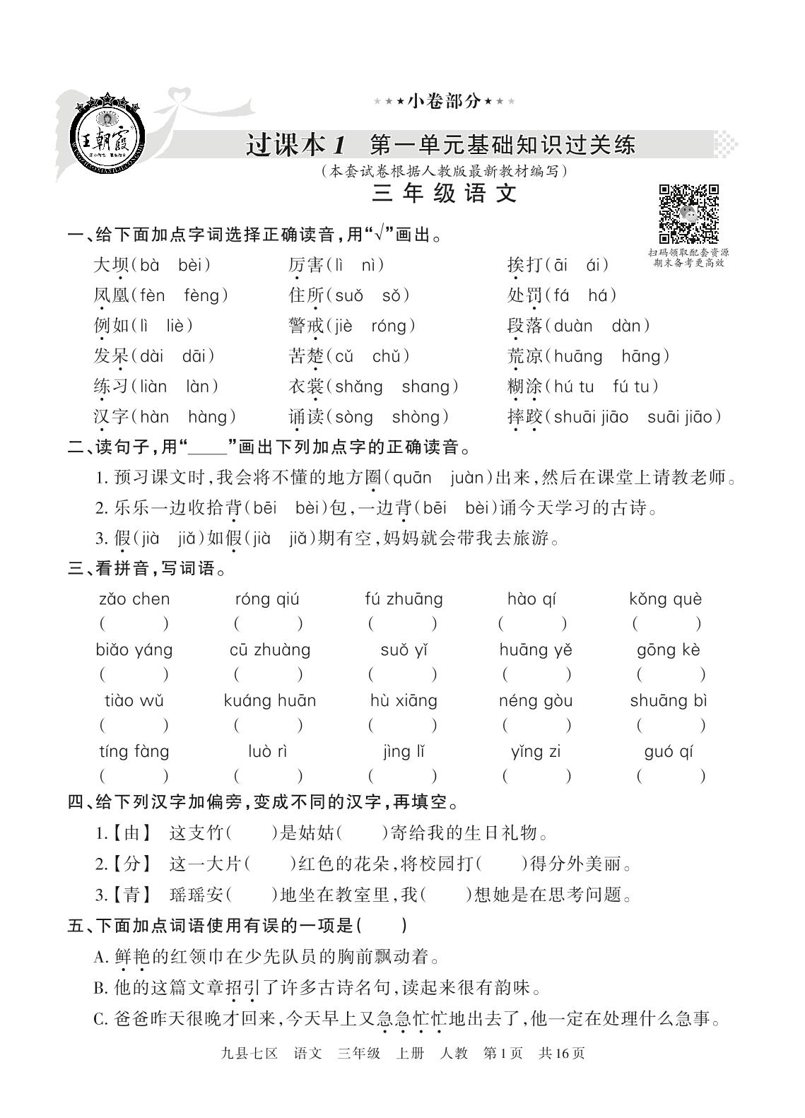 王朝霞期末过课本三年级上册语文(人教版)_R21080185713【0】