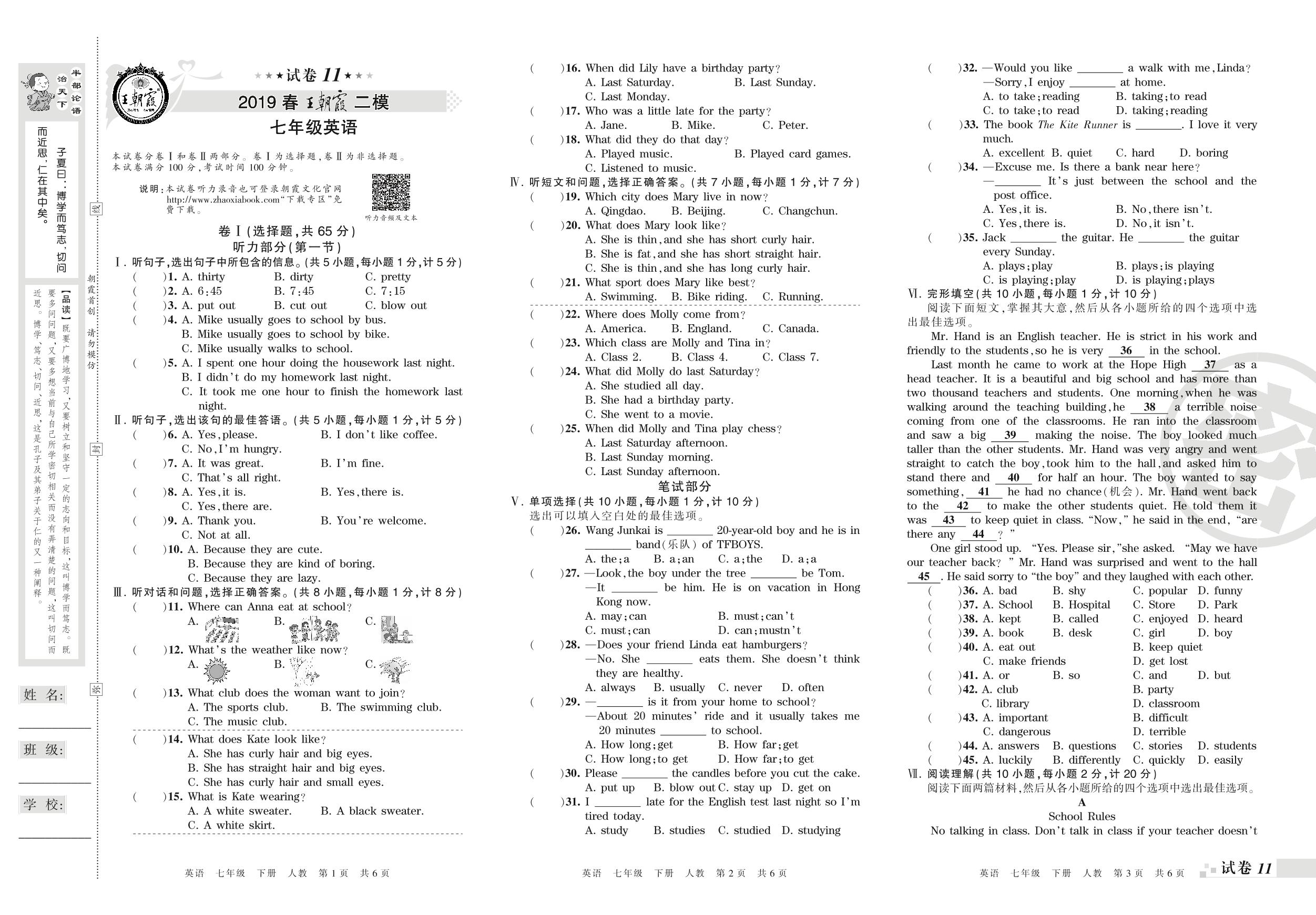 王朝霞期末模拟卷七年级下册英语(人教版)_R210807201016【11】
