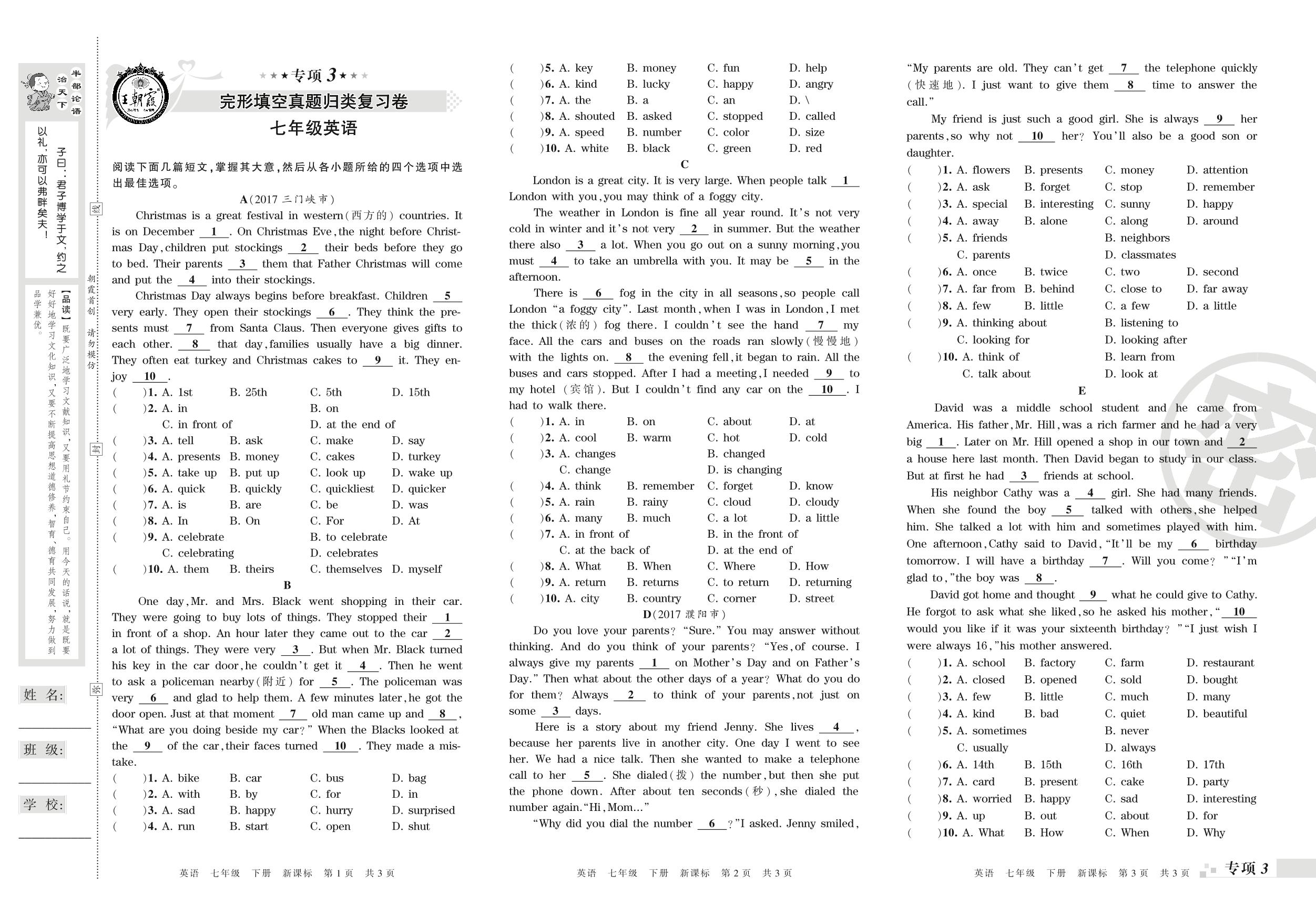 王朝霞期末专项卷——完形填空、选择型阅读真题归类复习卷七年级下册英语(新课版)_R210807201522【0】