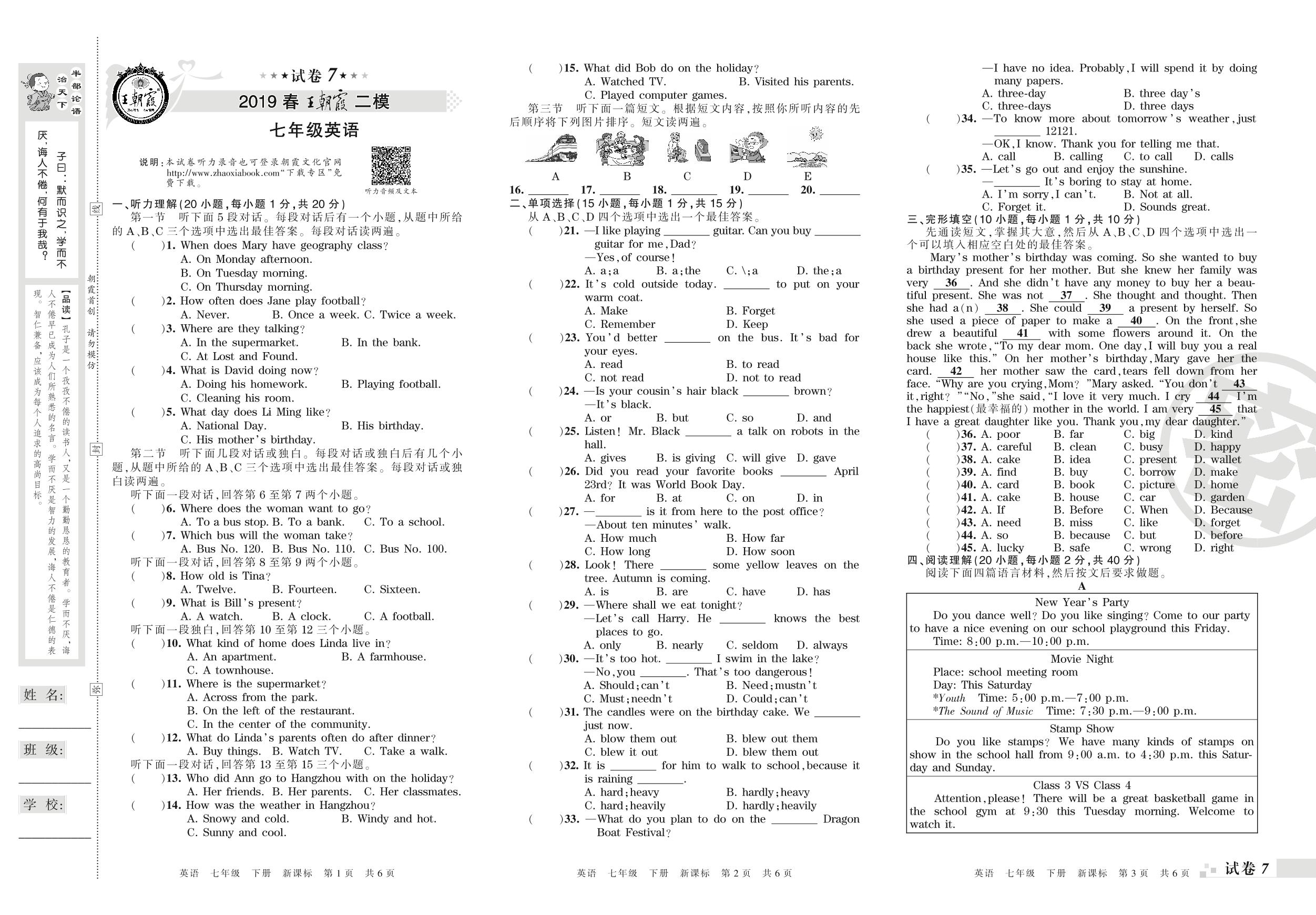 王朝霞期末模拟卷七年级下册英语(新课版)_R210807201628【7】