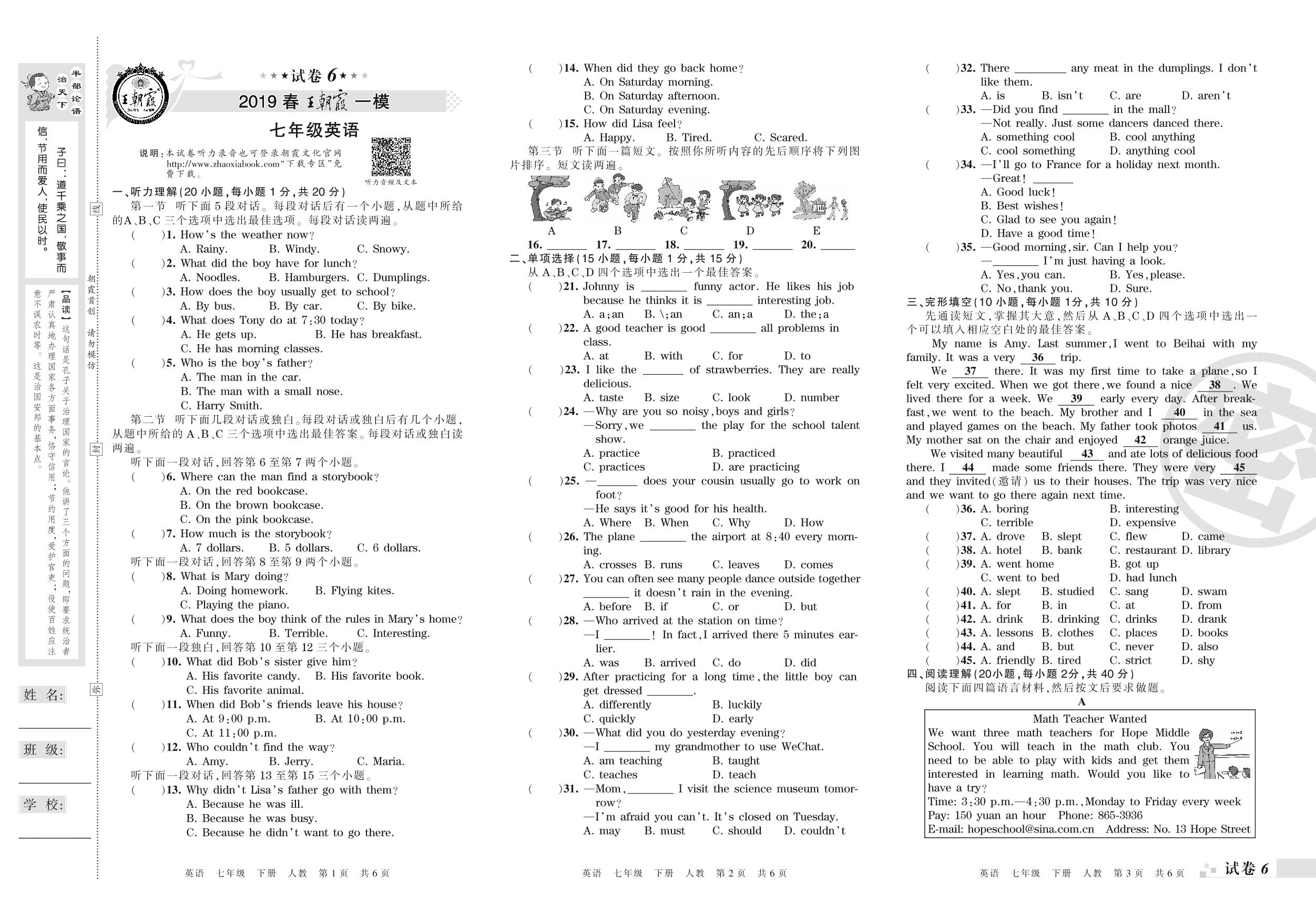 王朝霞期末模拟卷七年级下册英语(人教版)_R210807201752【6】