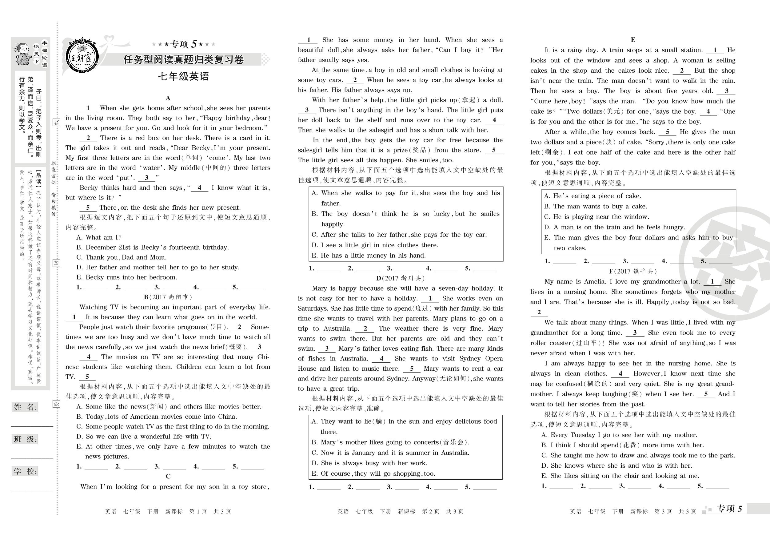七年级英语新课标版下册专项卷