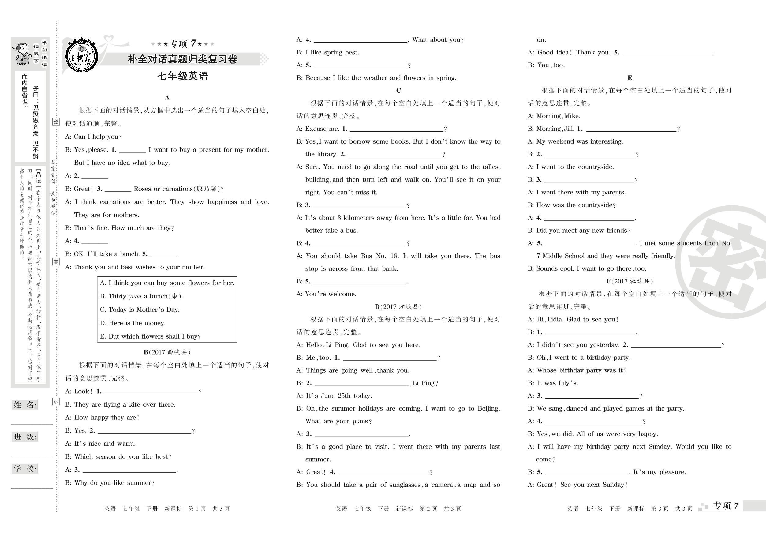 王朝霞期末专项卷——补全对话、书面表达真题归类复习卷七年级下册英语(新课版)_R210807201834【0】