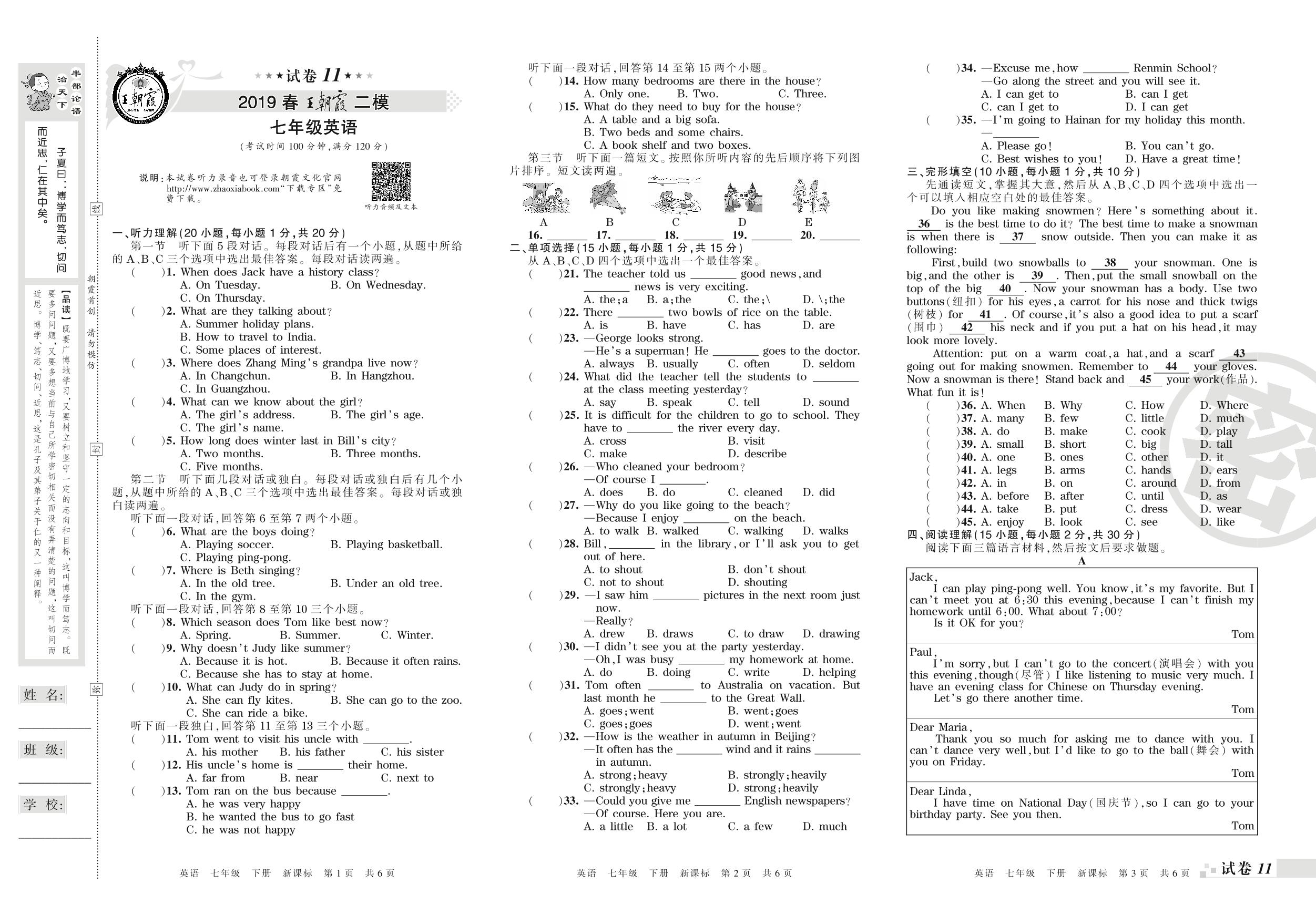 王朝霞期末模拟卷七年级下册英语(新课版)_R210807202001【11】