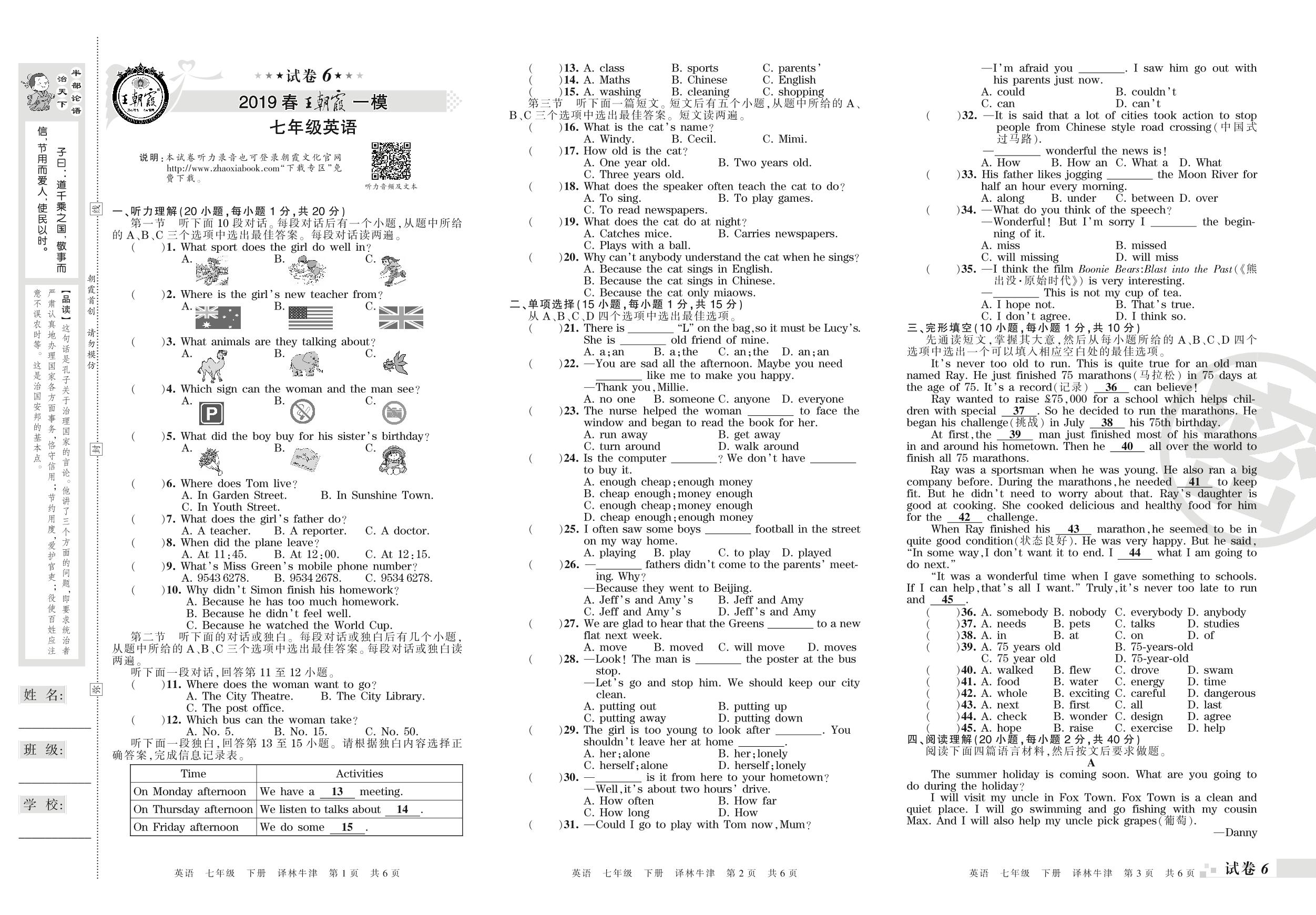 王朝霞期末模拟卷七年级下册英语(译林版)_R210807202127【6】