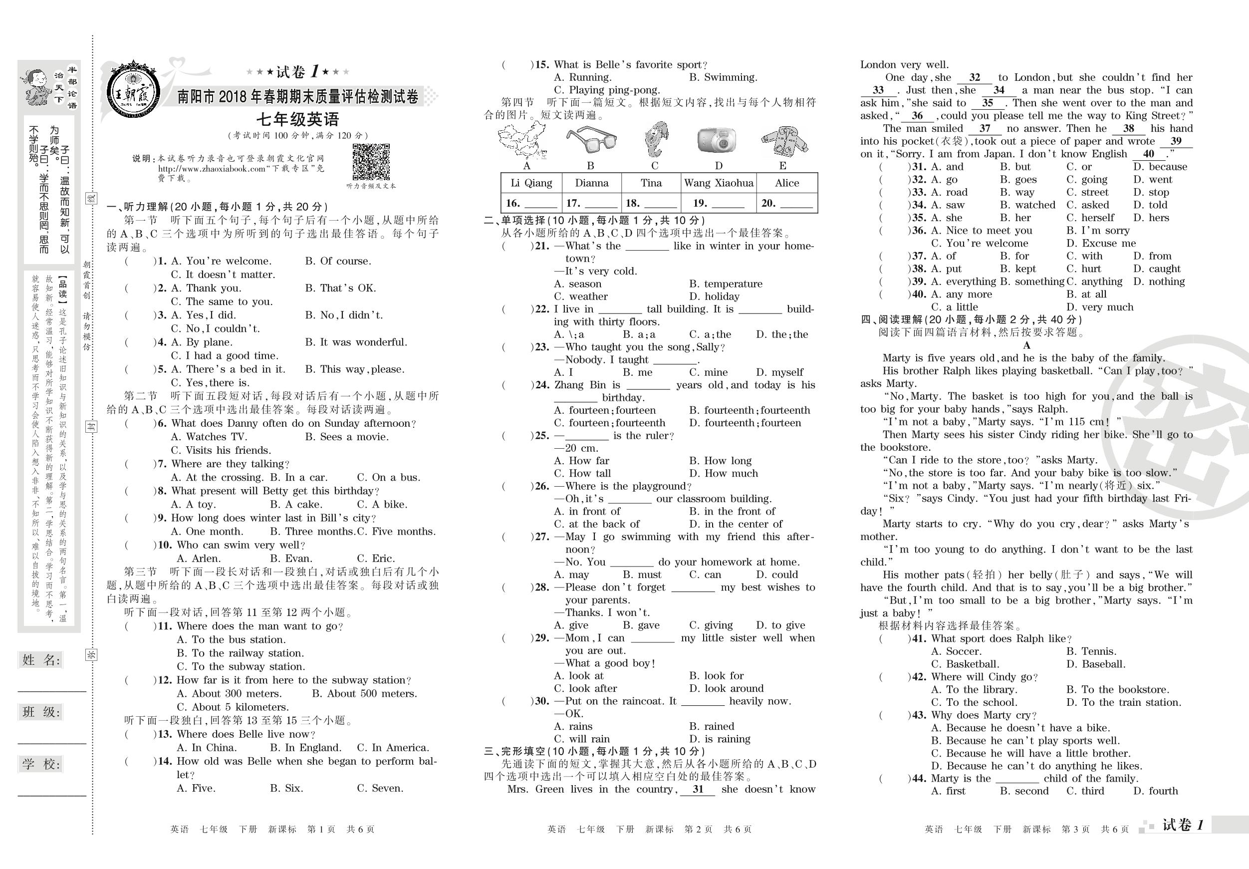 2017-2018学年第二学期南阳市七年级英语试卷(新课版)_R210807202214【1】