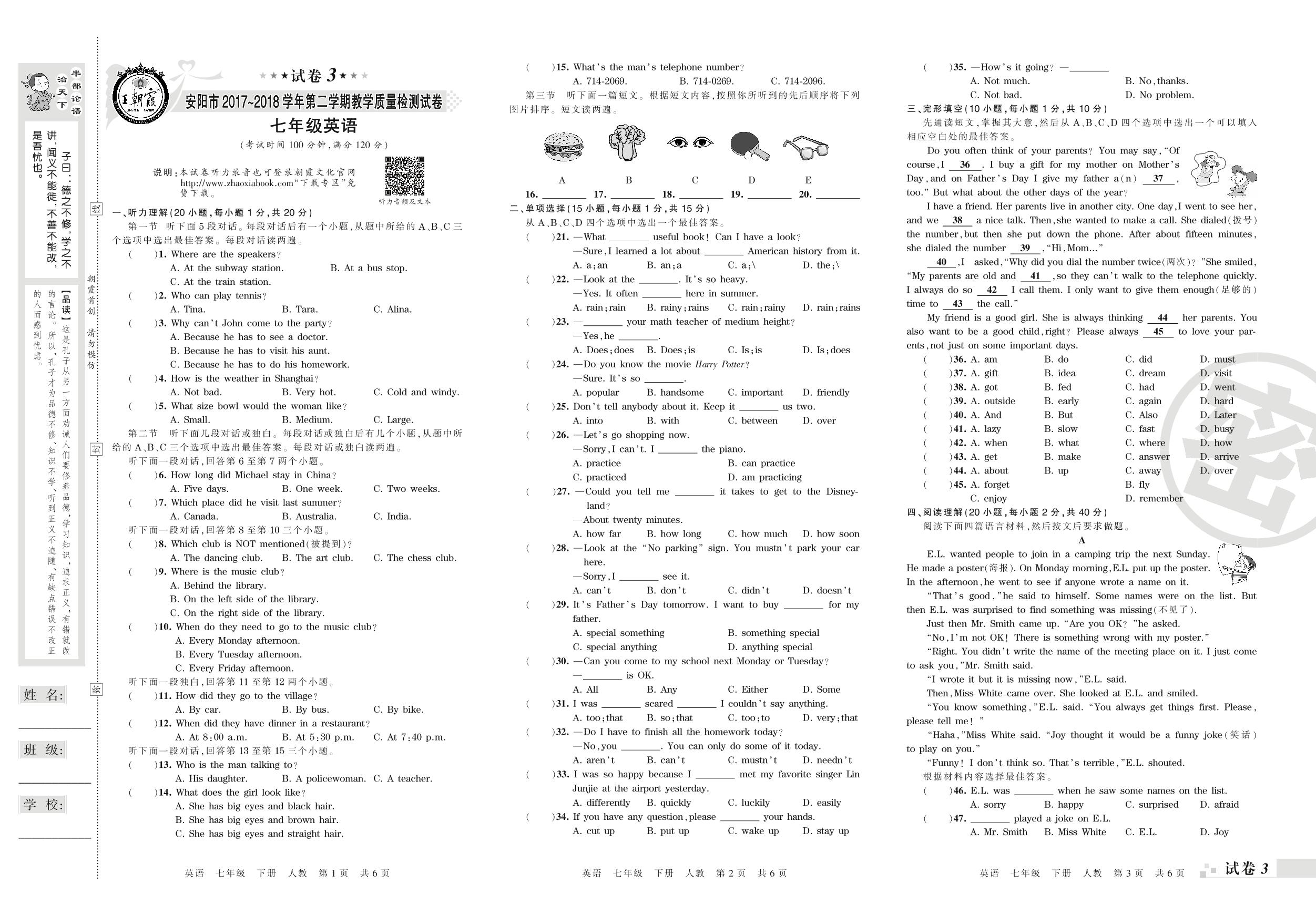 2017-2018学年第二学期安阳市七年级英语试卷(人教版)【3】