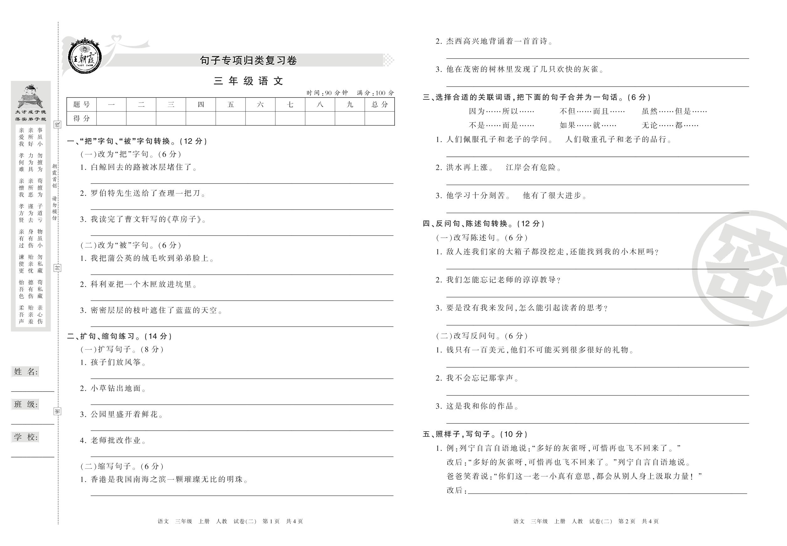 王朝霞期末专项卷——句子专项归类复习三年级上册语文(人教版)【2】