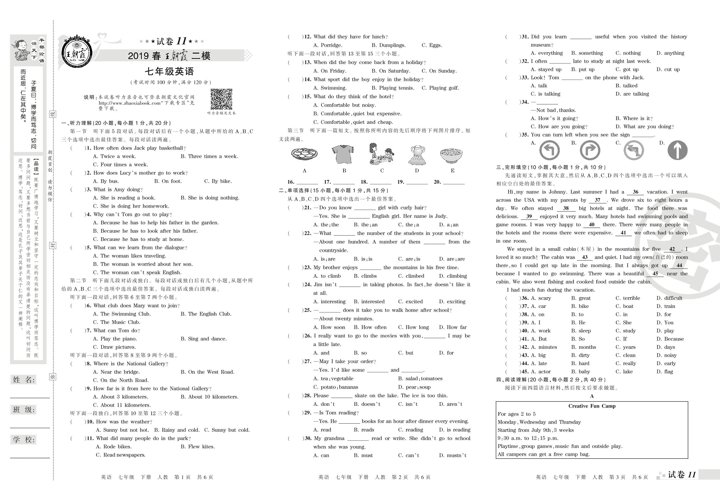王朝霞期末模拟卷七年级下册英语(人教版)_R210807202513【11】