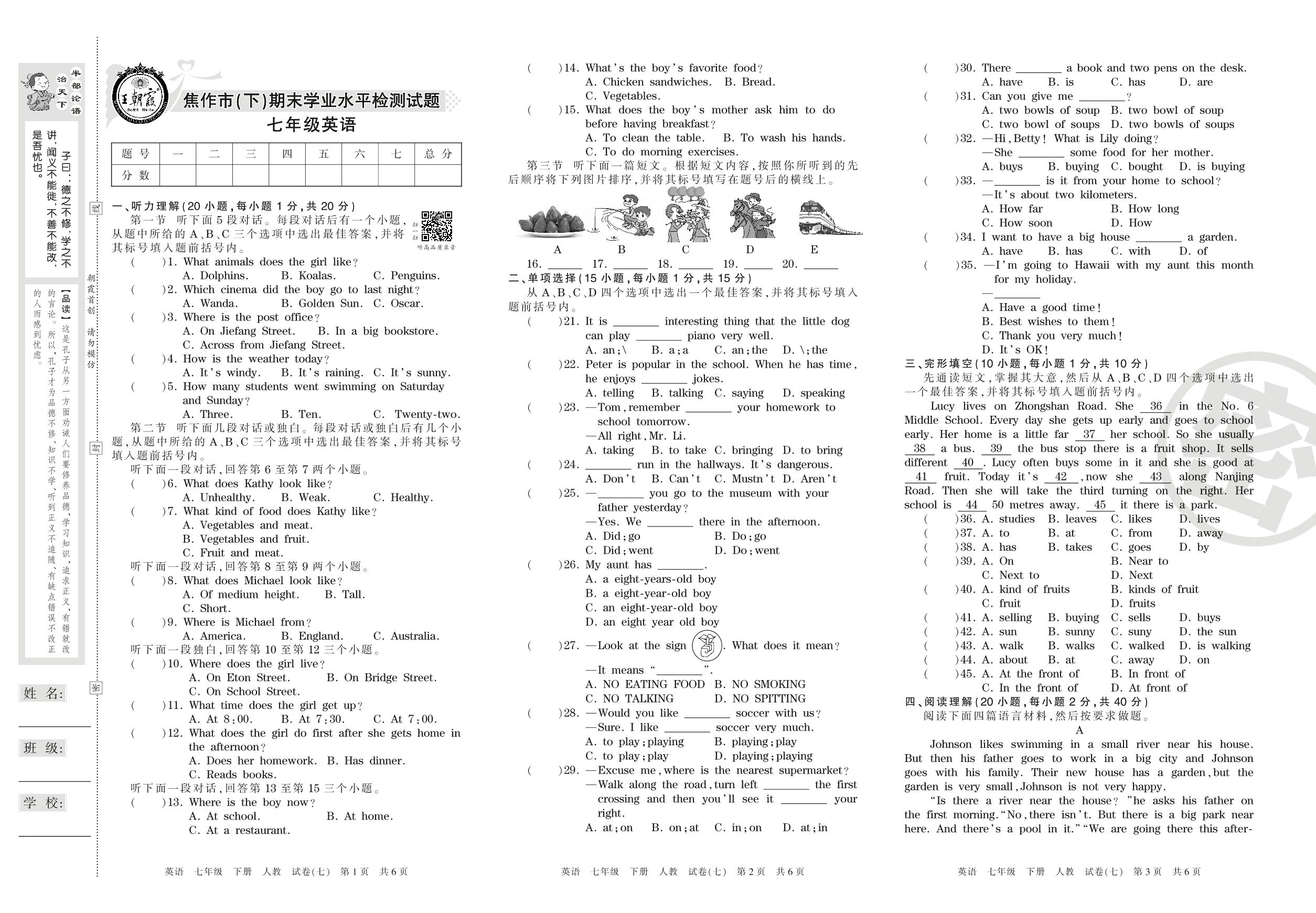 2015-2016学年第二学期焦作市七年级英语试卷(人教版)【7】
