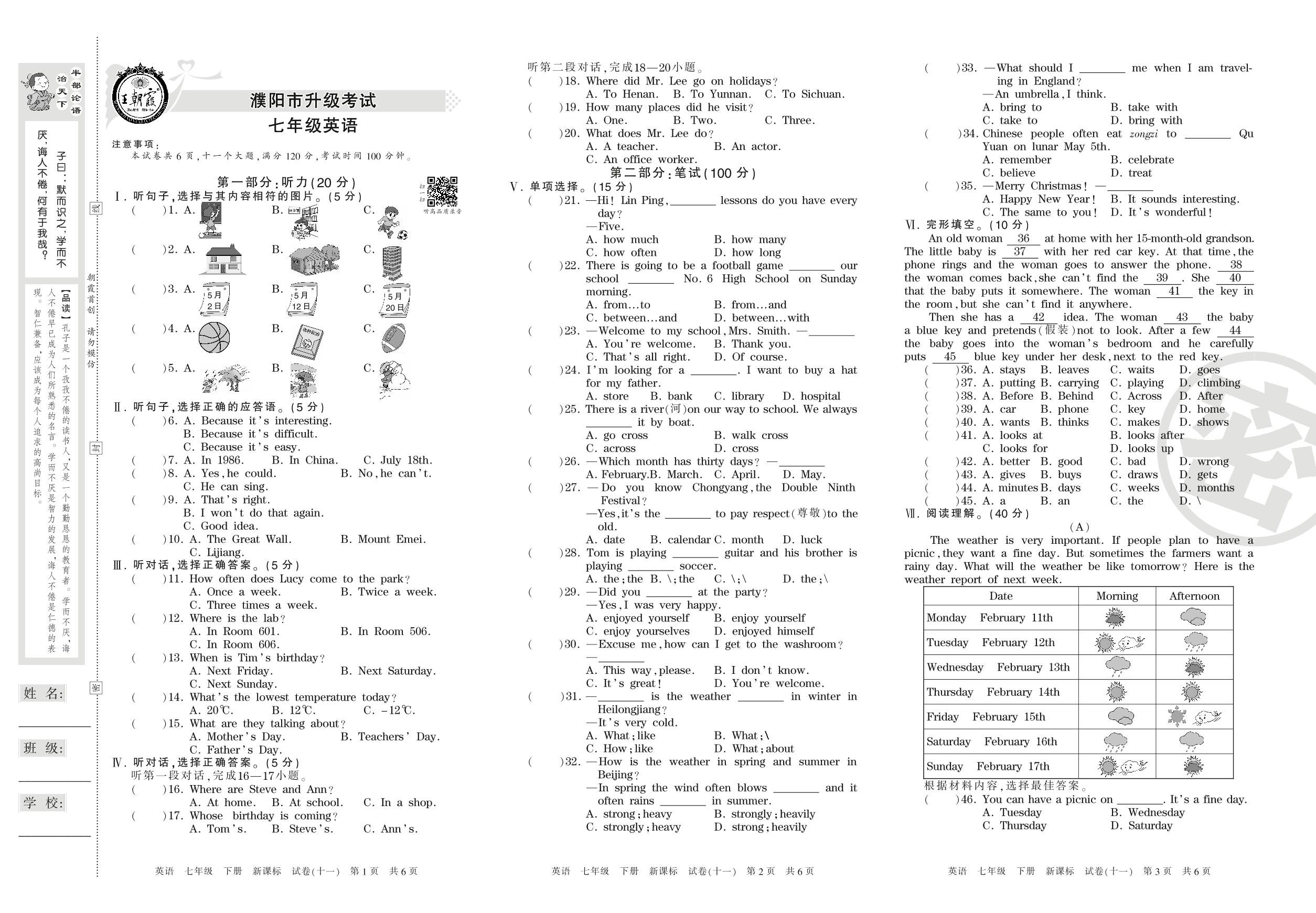 2015-2016学年第二学期濮阳市七年级英语试卷(新课版)【11】