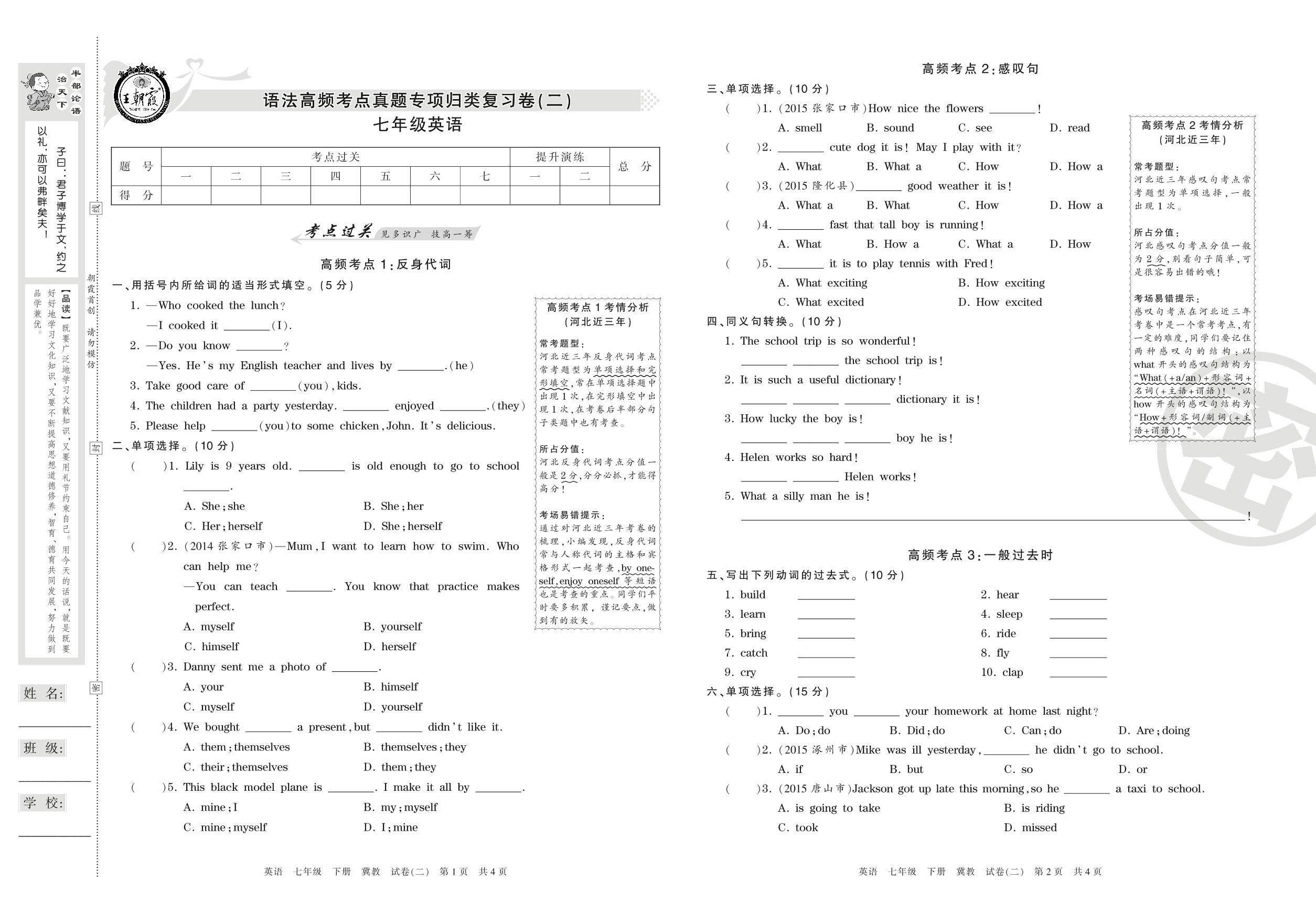 王朝霞期末专项卷七年级下册英语(冀教版)_R210807203342【2】