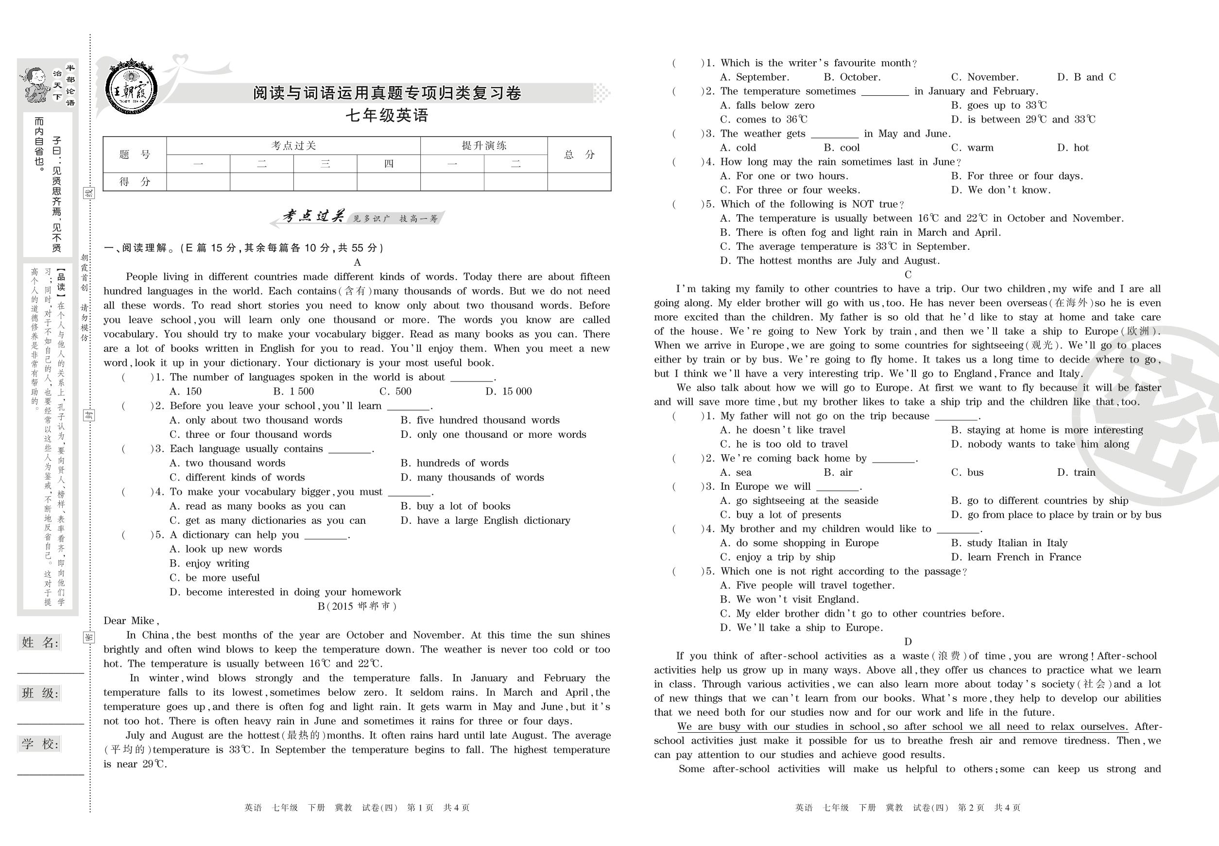 王朝霞期末专项卷七年级下册英语(冀教版)_R210807203351【4】