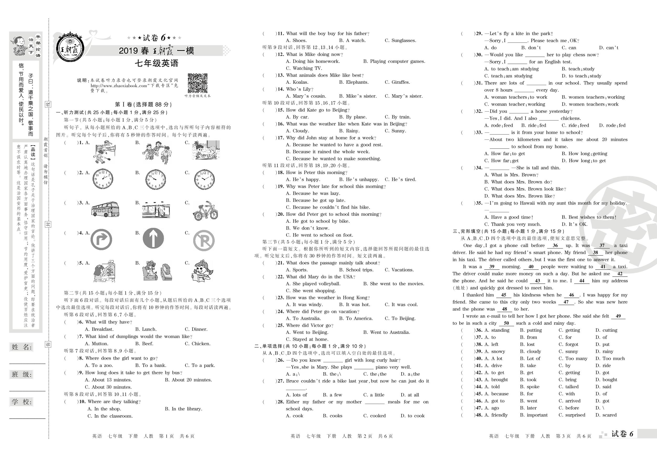 王朝霞期末模拟卷七年级下册英语(人教版)_R210807203614【6】