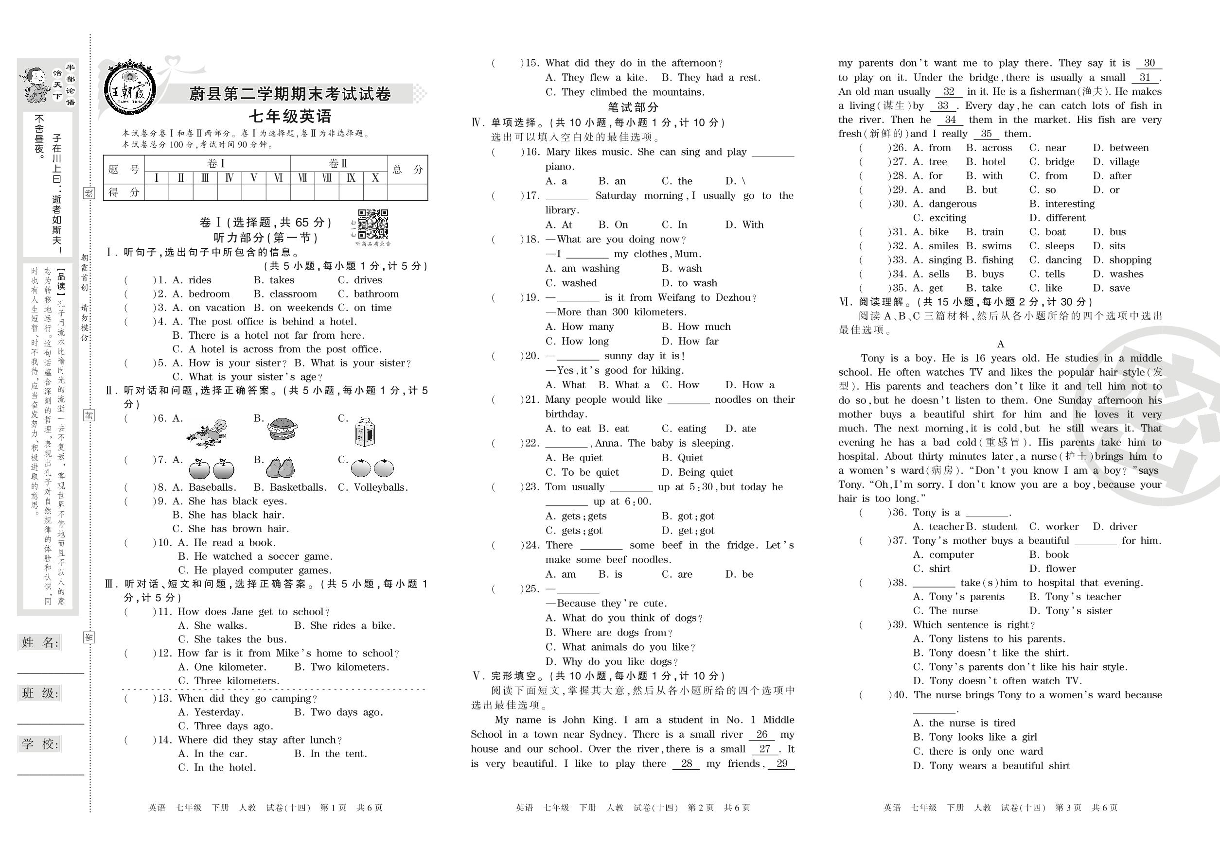 2015-2016学年第二学期张家口市蔚县七年级英语试卷(人教版)【14】