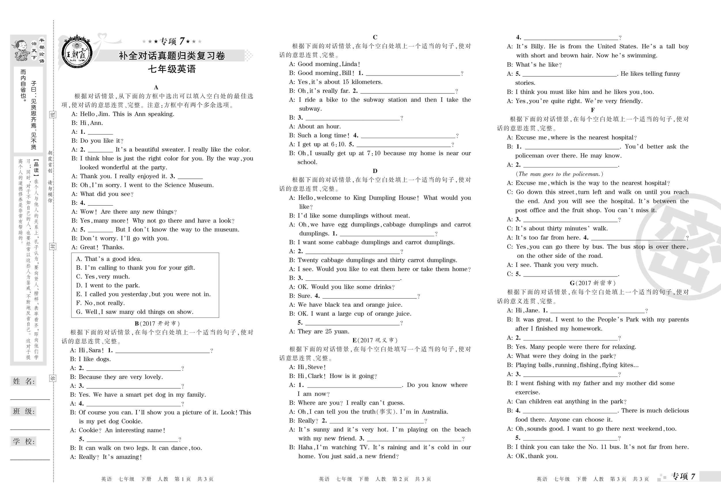 王朝霞期末专项卷——补全对话、书面表达真题归类复习卷七年级下册英语(人教版)_R210807203941【0】