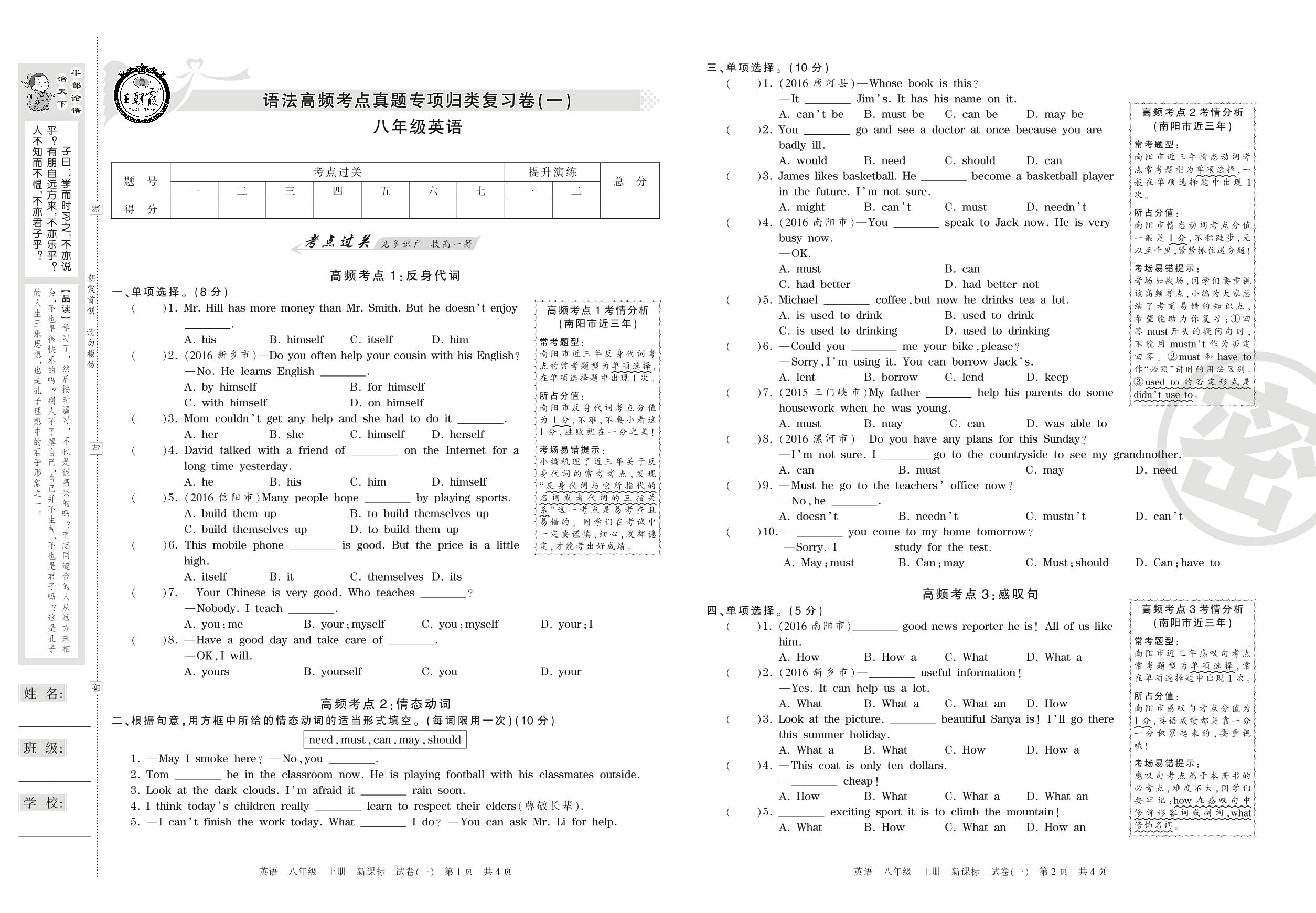 七年级英语新课标版上册专项卷