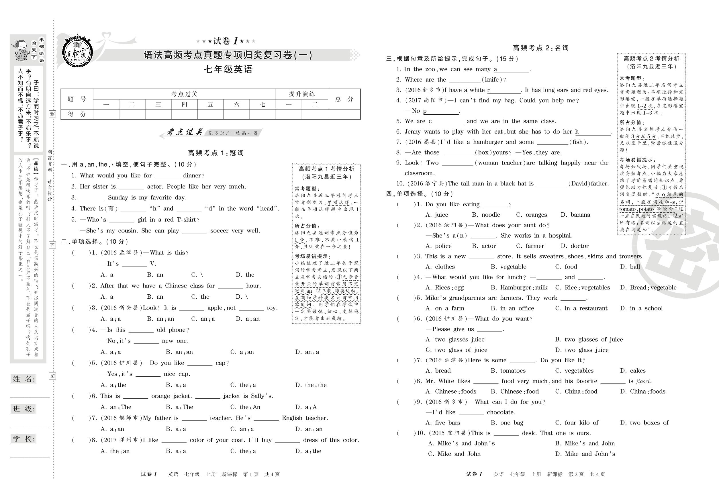 王朝霞期末专项卷七年级上册英语(新课版)_R210807210555【1】