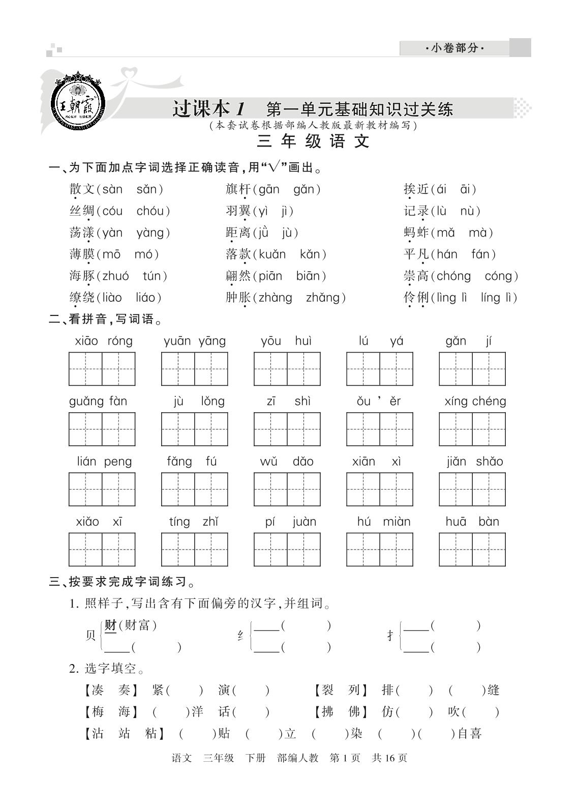 王朝霞期末过课本——基础知识过关练三年级下册语文(人教版)_R21080190310【0】