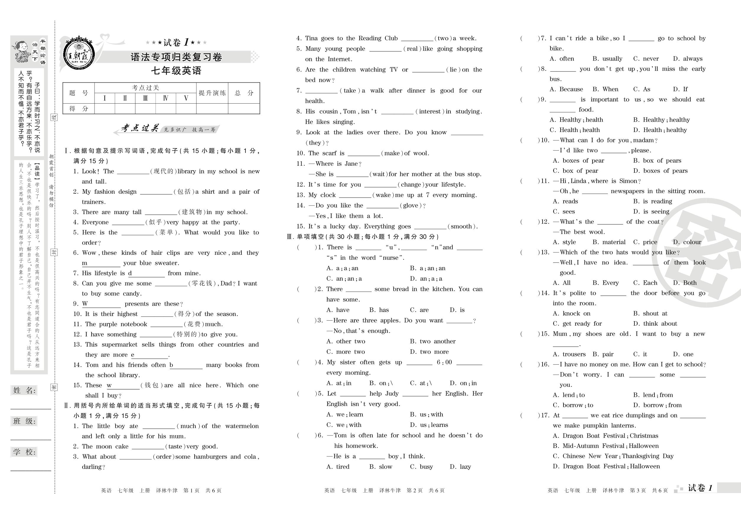 王朝霞期末专项卷七年级上册英语(译林版)【1】