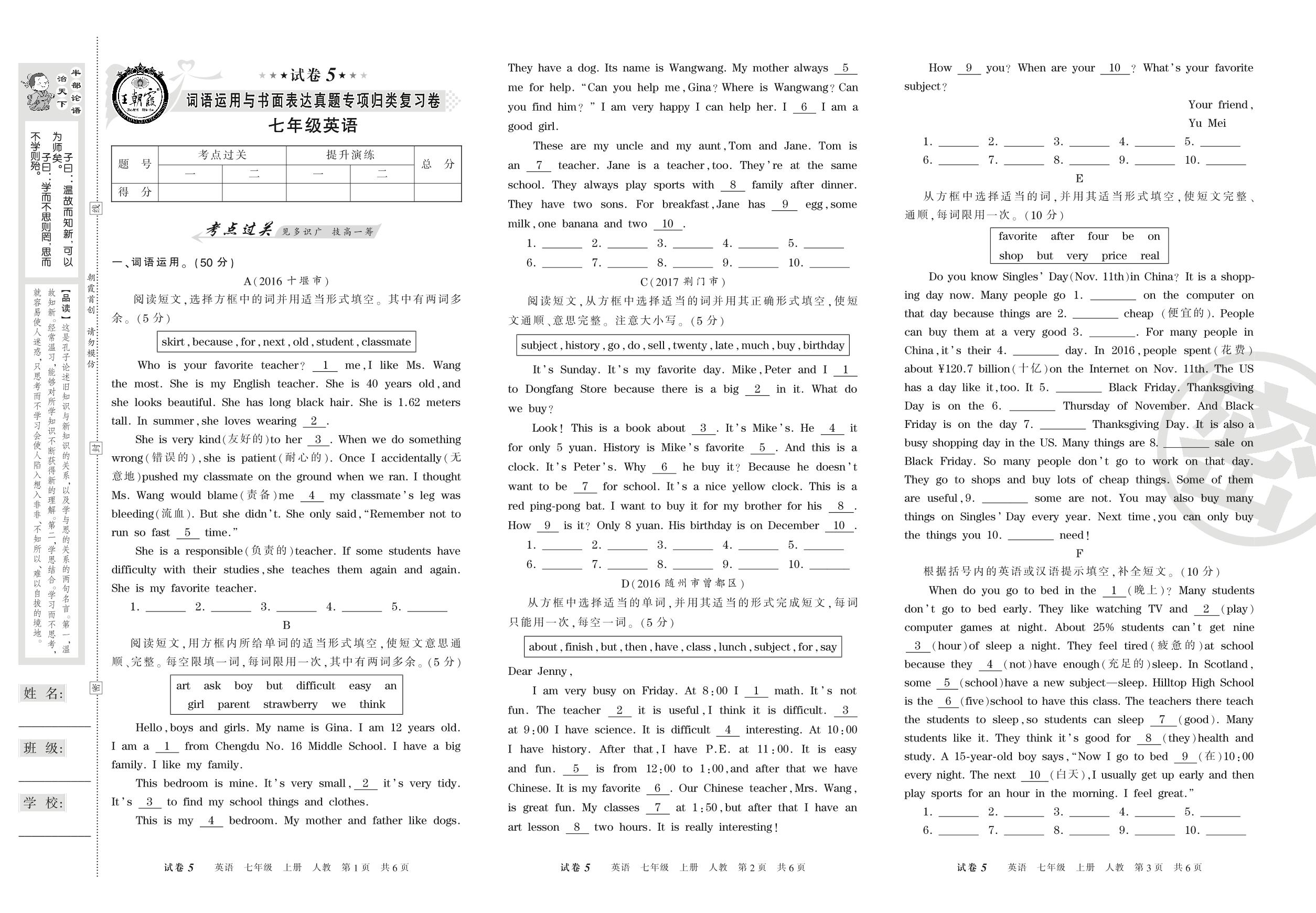 王朝霞期末专项卷七年级上册英语(人教版)【5】