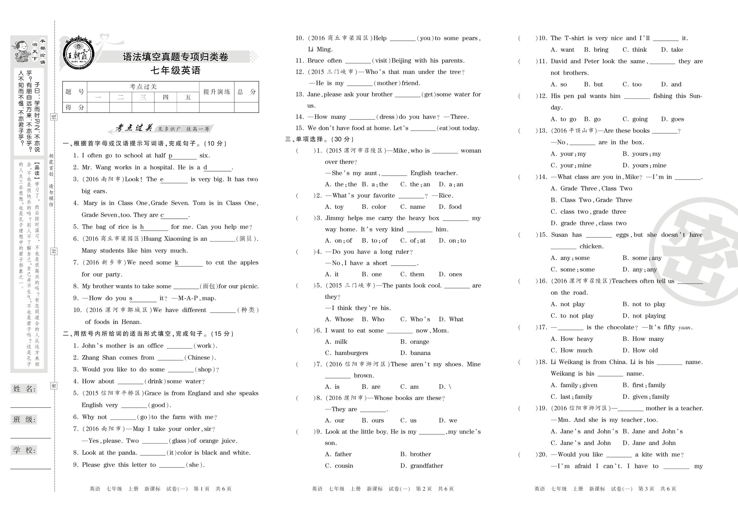 王朝霞期末专项卷七年级上册英语(新课版)_R210807212007【1】
