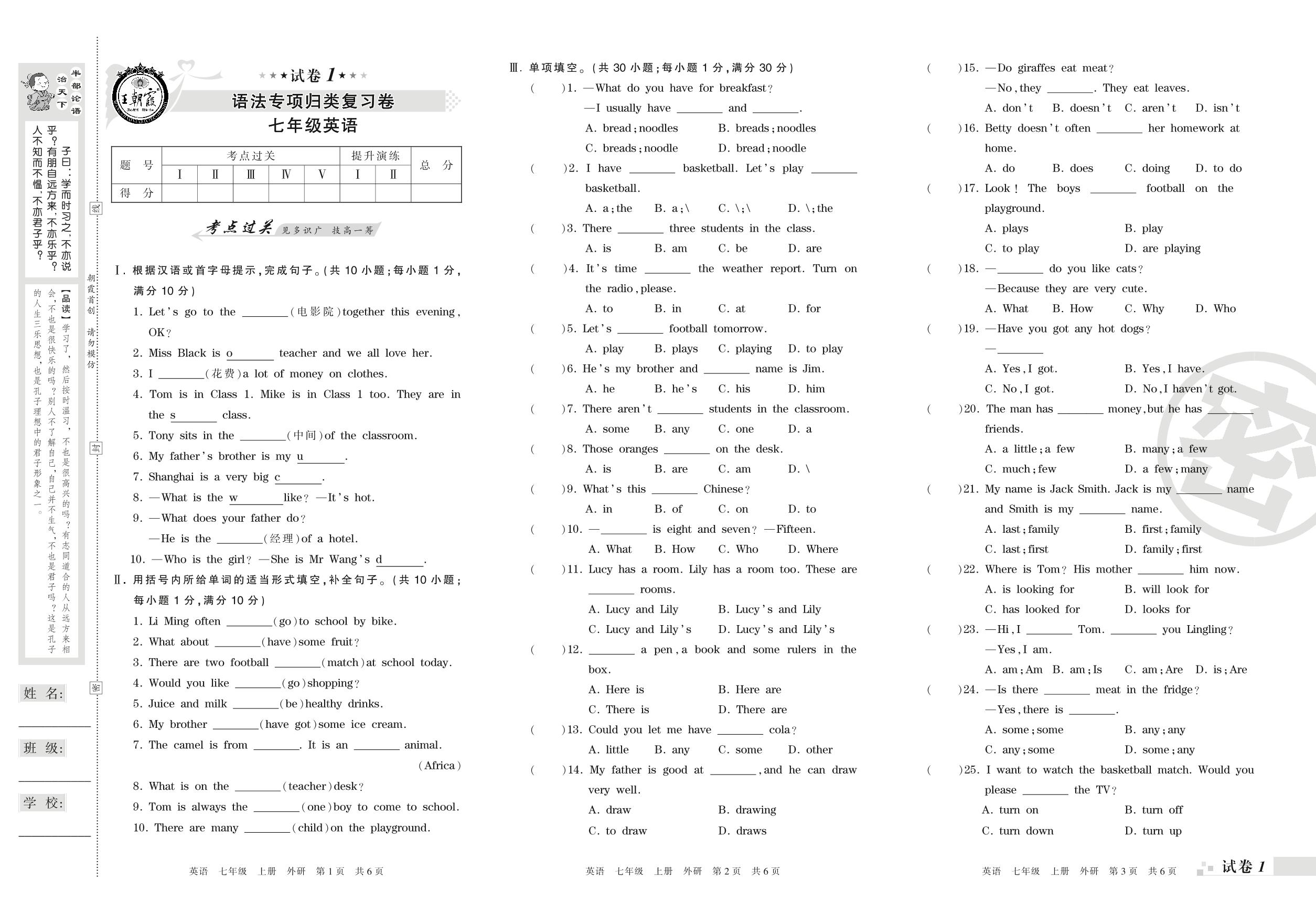 王朝霞期末专项卷七年级上册英语(外研版)【1】