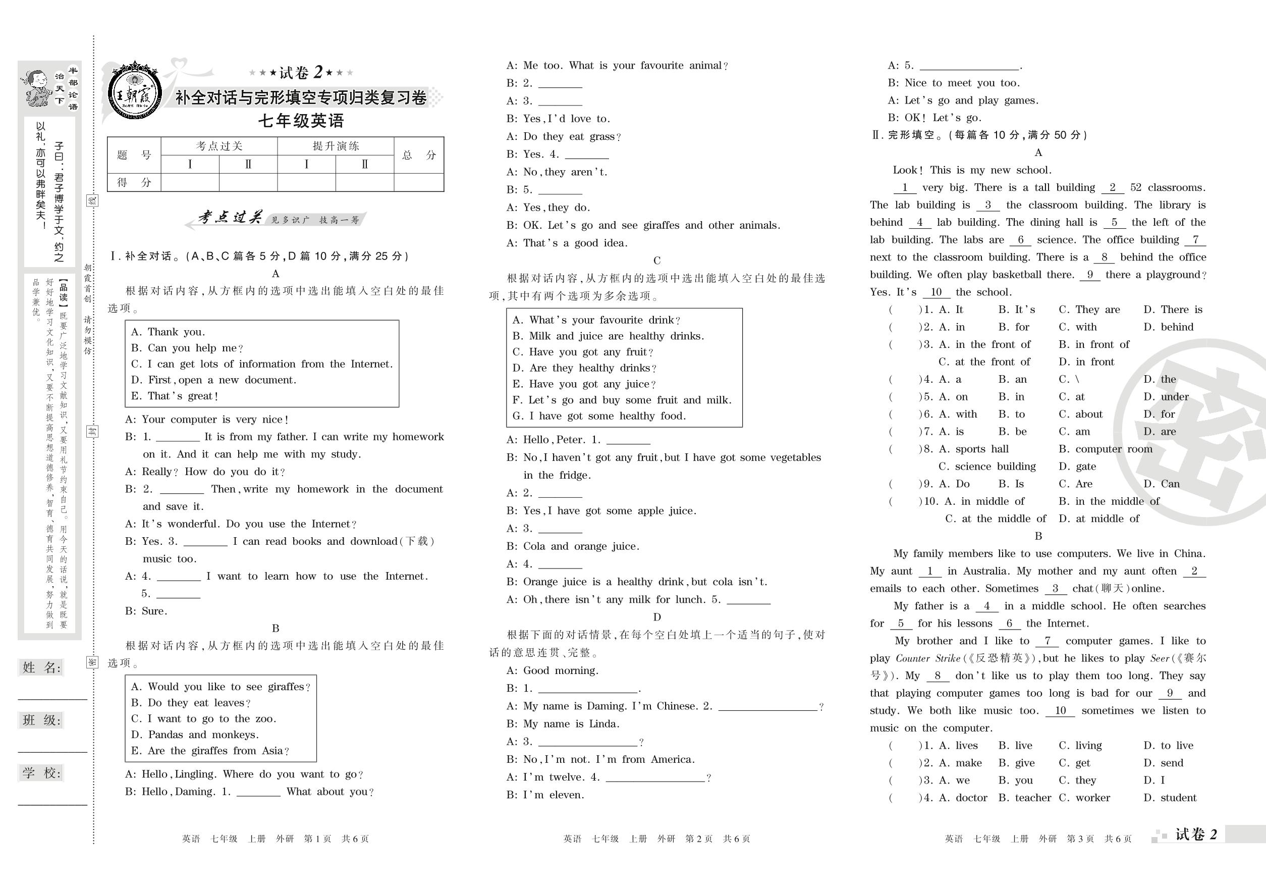 王朝霞期末专项卷七年级上册英语(外研版)【2】