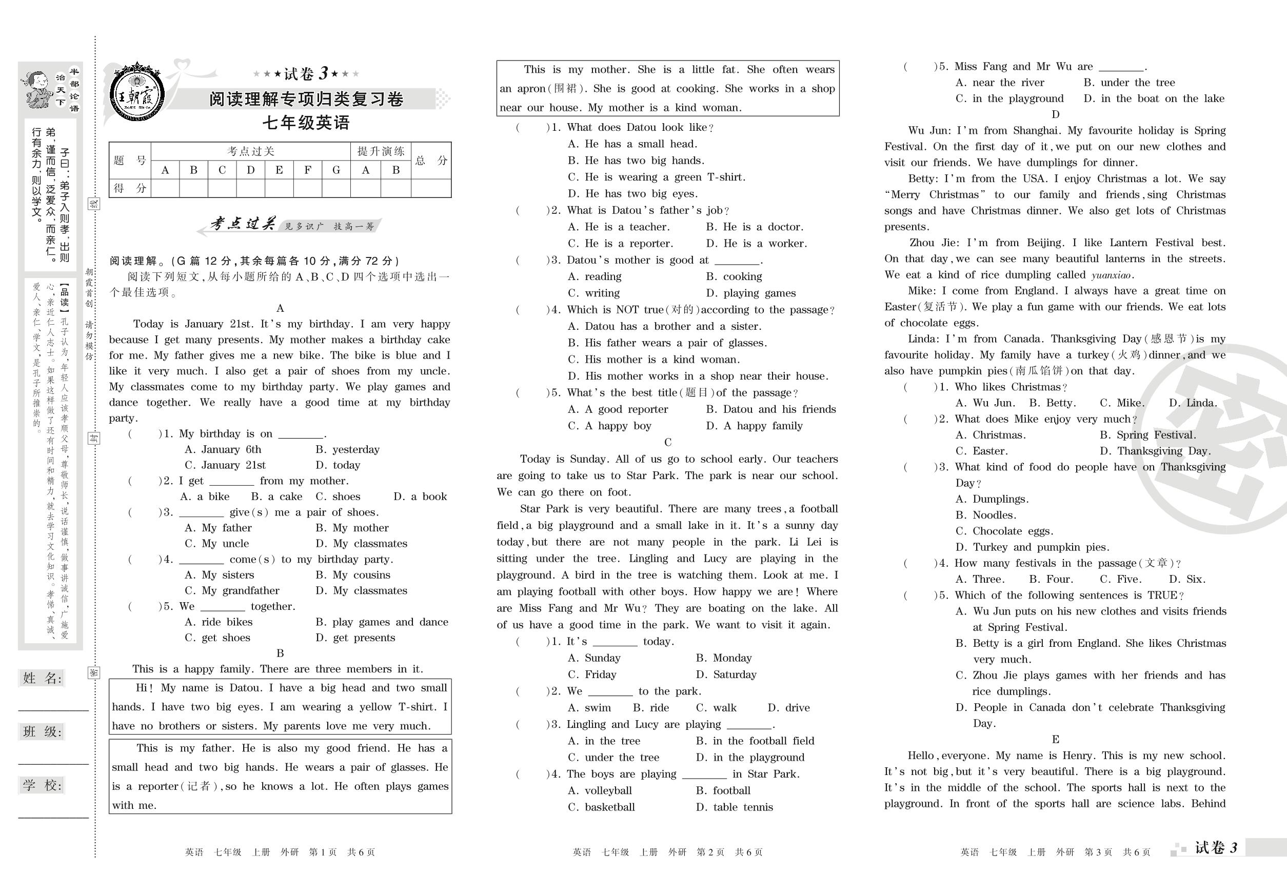 王朝霞期末专项卷七年级上册英语(外研版)【3】