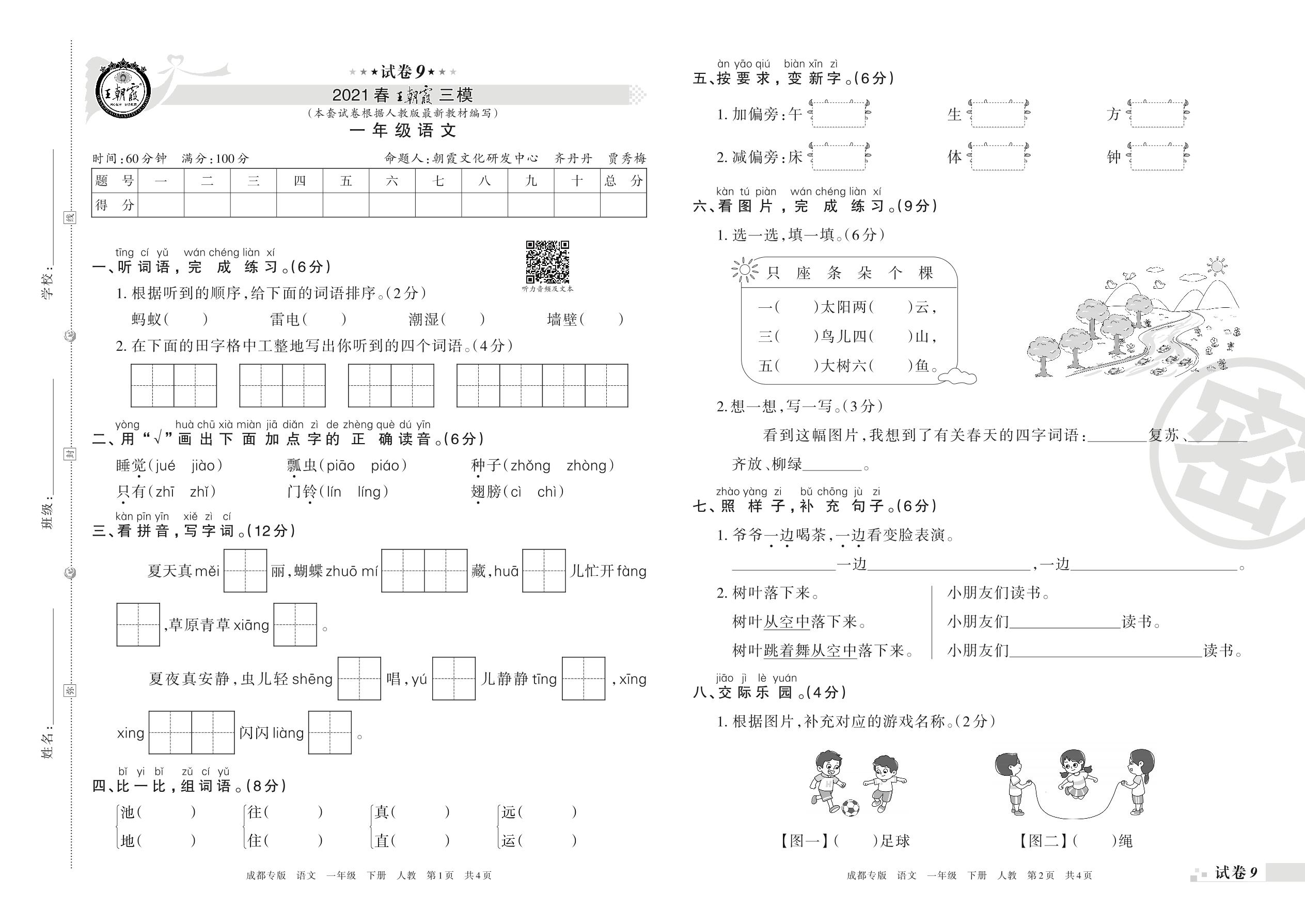 王朝霞期末模拟卷一年级下册语文(人教版)_R210731172645【9】