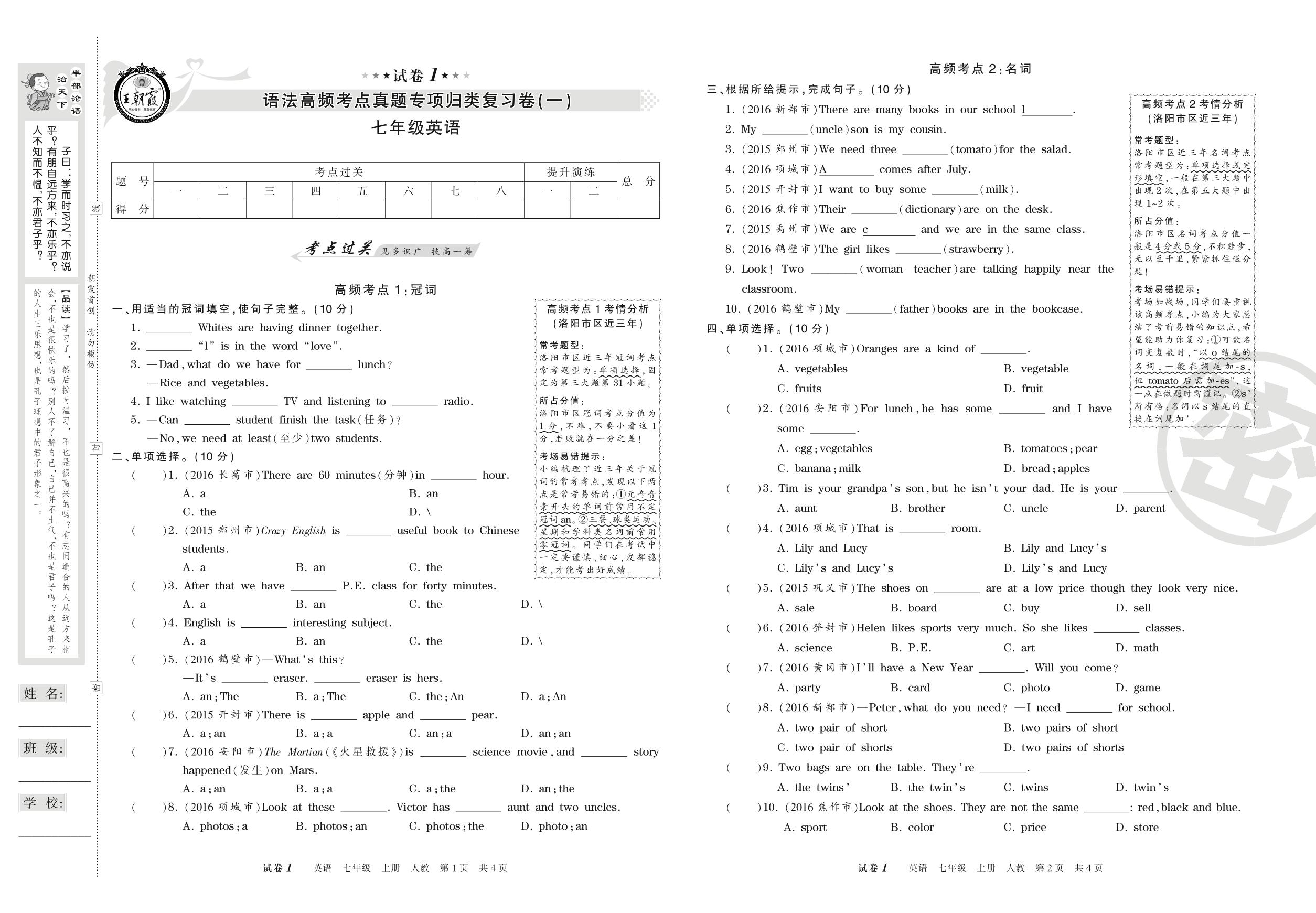 王朝霞期末专项卷七年级上册英语(人教版)_R210807213000【1】