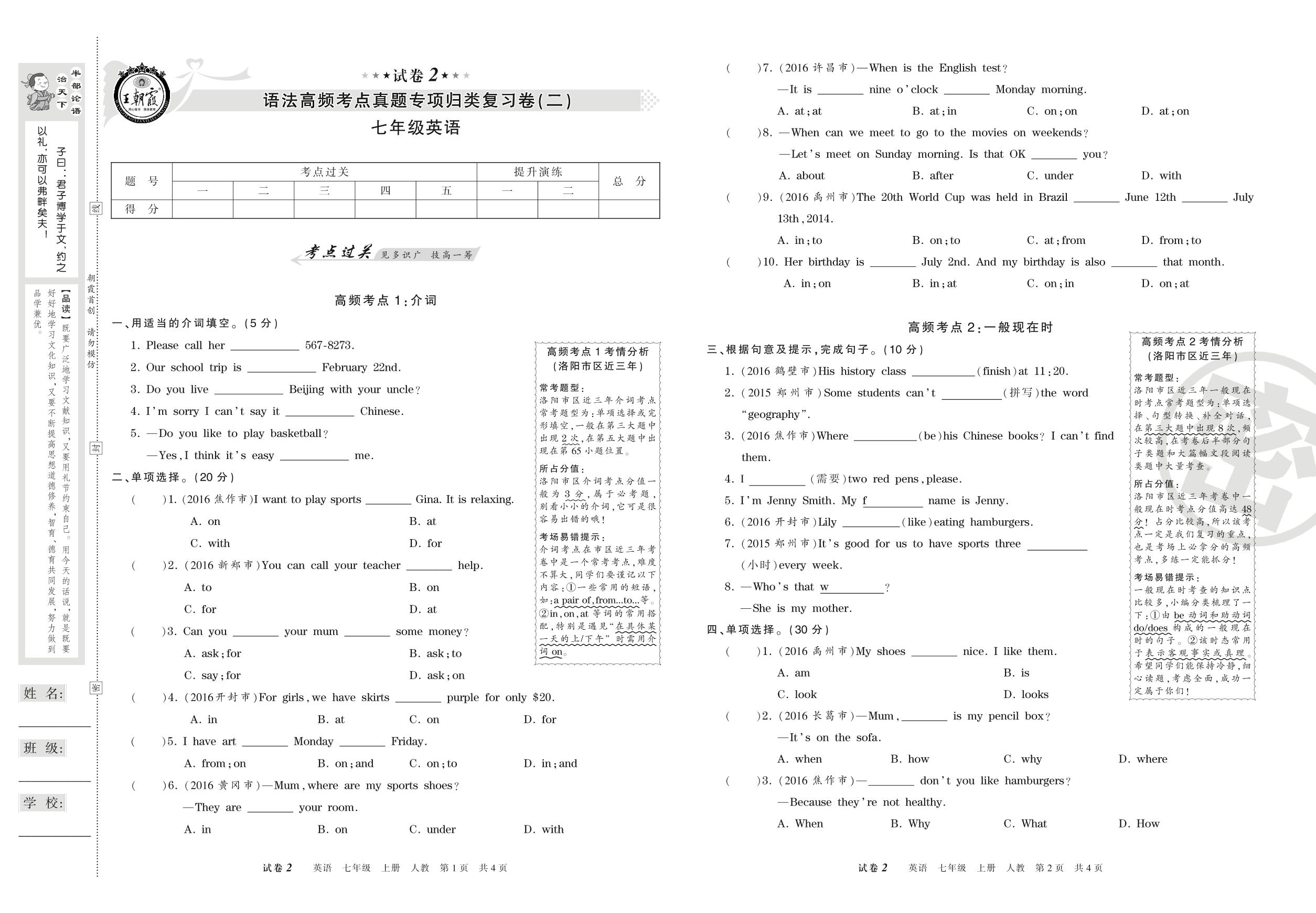 王朝霞期末专项卷七年级上册英语(人教版)_R210807213005【2】