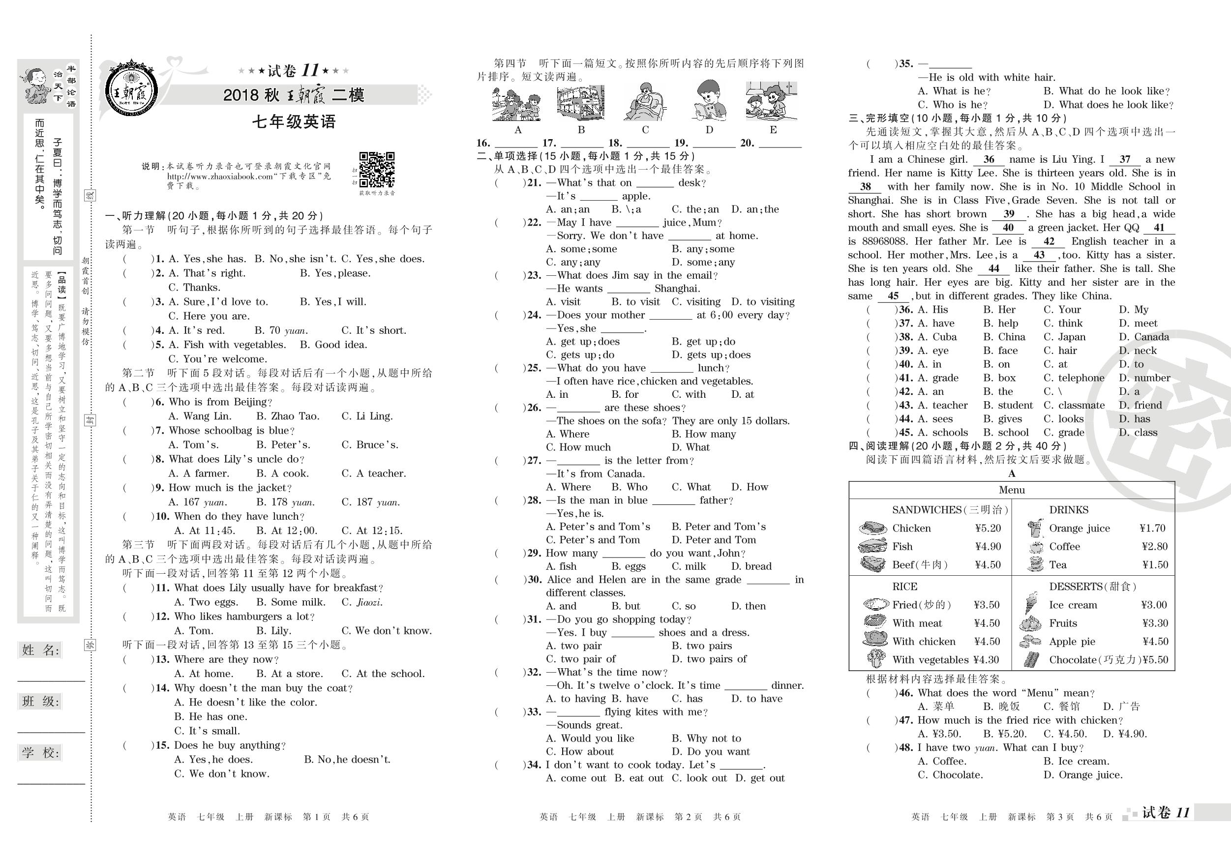 王朝霞期末模拟卷七年级上册英语(新课版)_R210807213858【11】