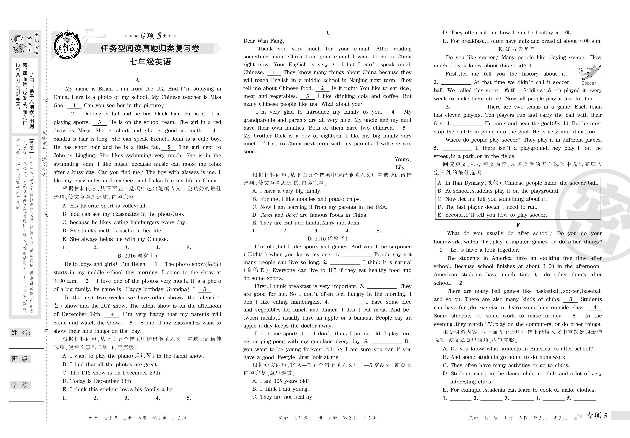 王朝霞期末专项卷——任务型阅读、词语运用真题归类复习七年级上册英语(人教版)_R210807214217【0】