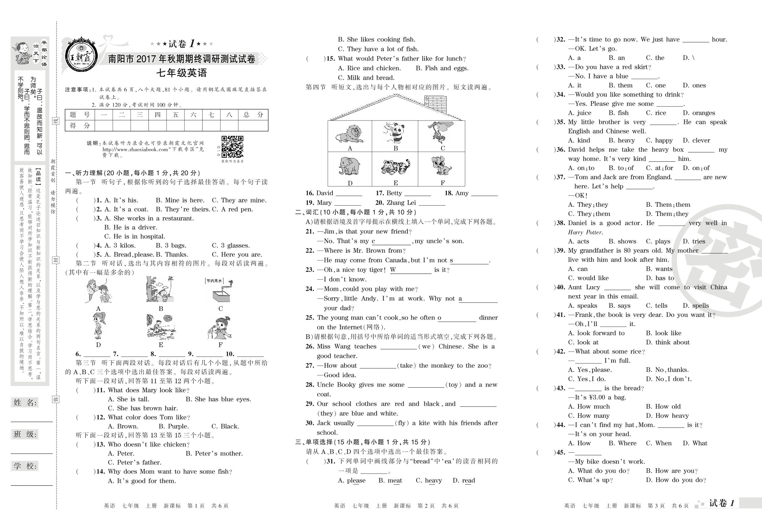 2017-2018学年第一学期南阳市七年级英语试卷(新课版)_R210807214350【1】