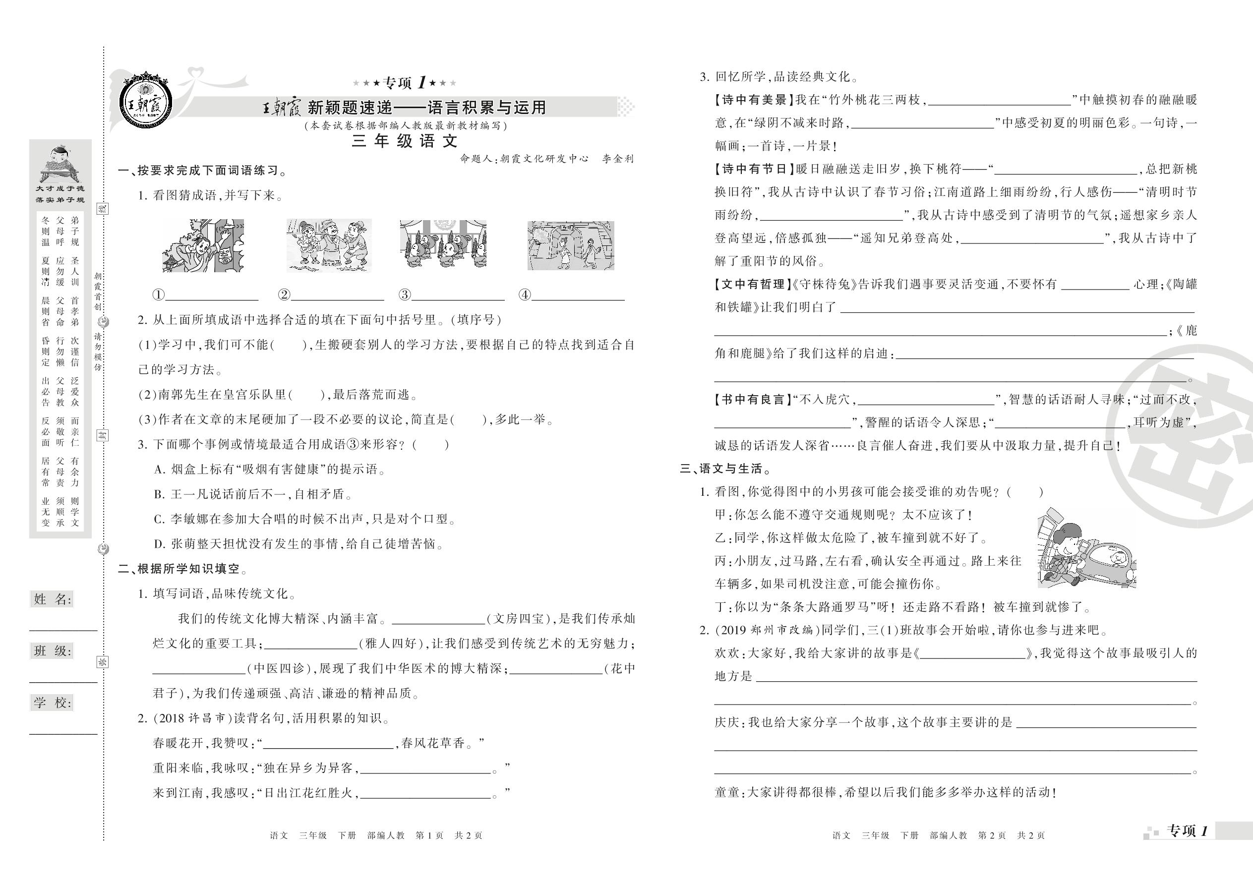 王朝霞期末专项卷——新颖题速递:语言积累与运用、非连续性文本阅读三年级下册语文(人教版)_R21080190507【0】
