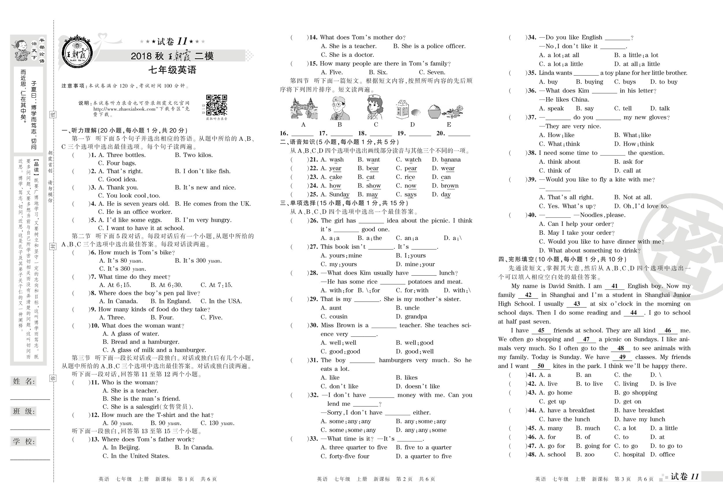 王朝霞期末模拟卷七年级上册英语(新课版)_R210807214446【11】