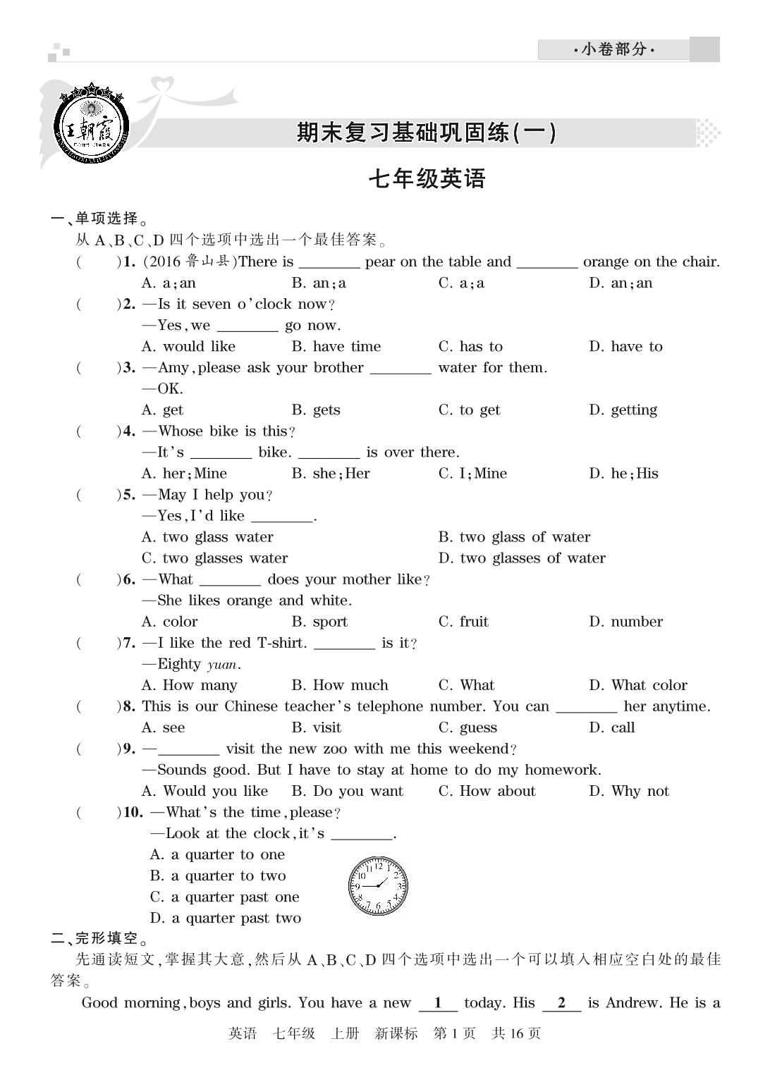 王朝霞期末小卷七年级上册英语(新课版)_R210807214453【0】