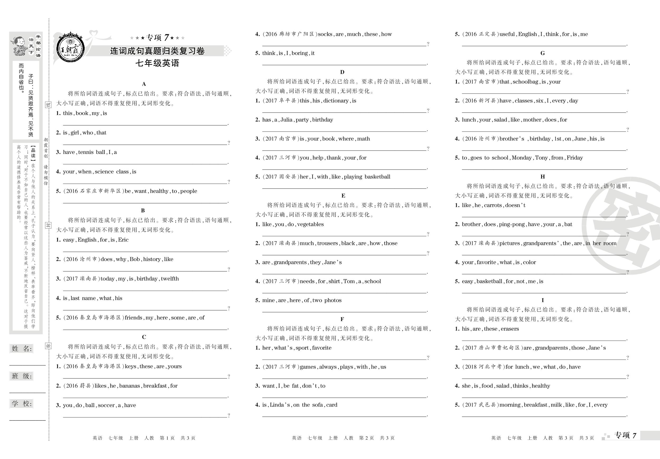 王朝霞期末专项卷——连词成句、书面表达真题归类复习卷七年级上册英语(人教版)_R210807214533【0】