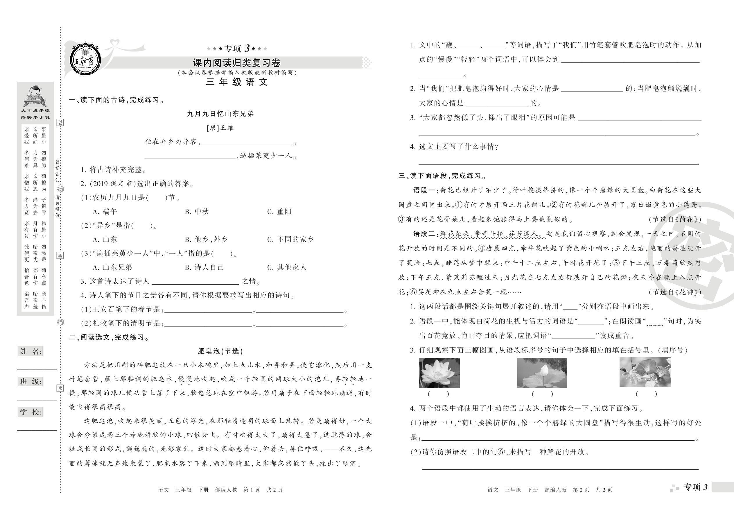 王朝霞期末专项卷——课内阅读、课外阅读真题归类复习卷三年级下册语文(人教版)_R21080190512【0】