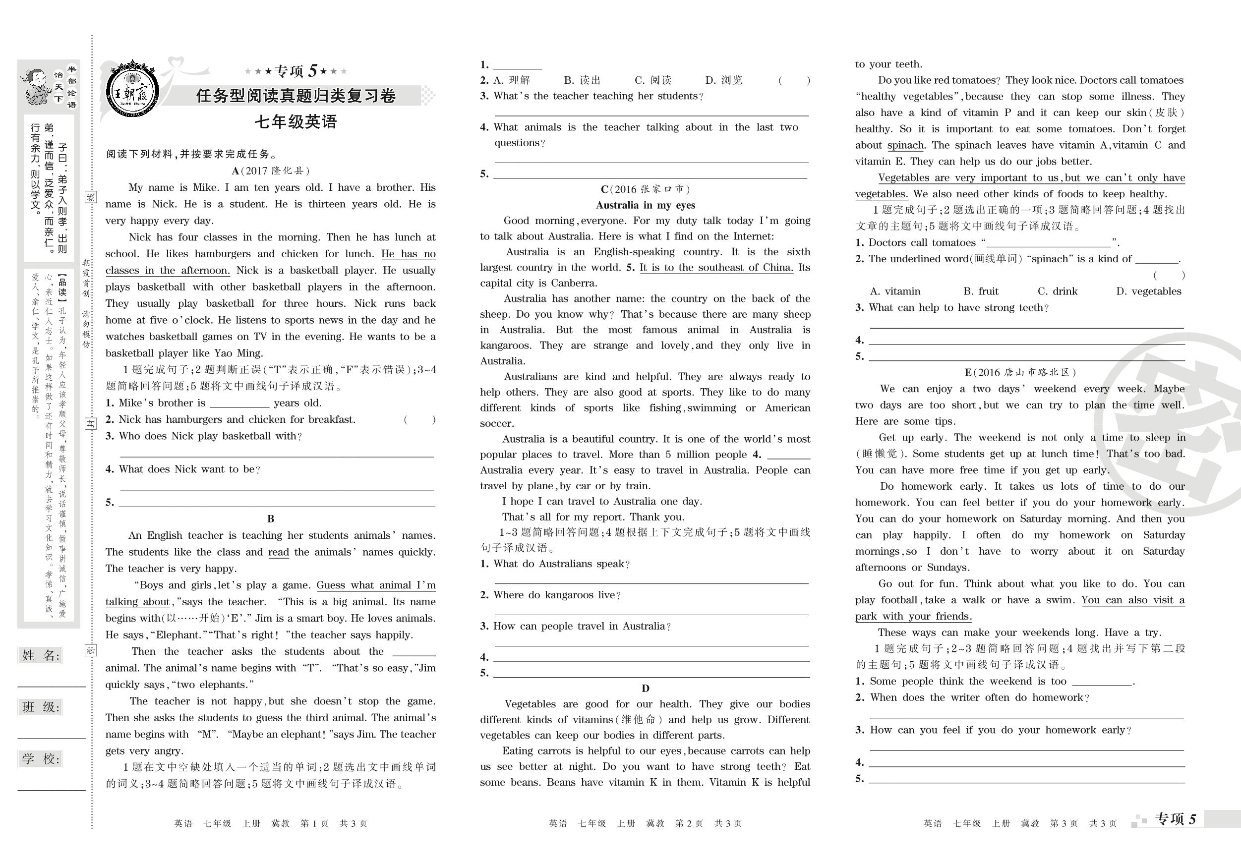 王朝霞期末专项卷——任务型阅读、词语运用真题归类复习卷七年级上册英语(冀教版)_R210807214838【0】