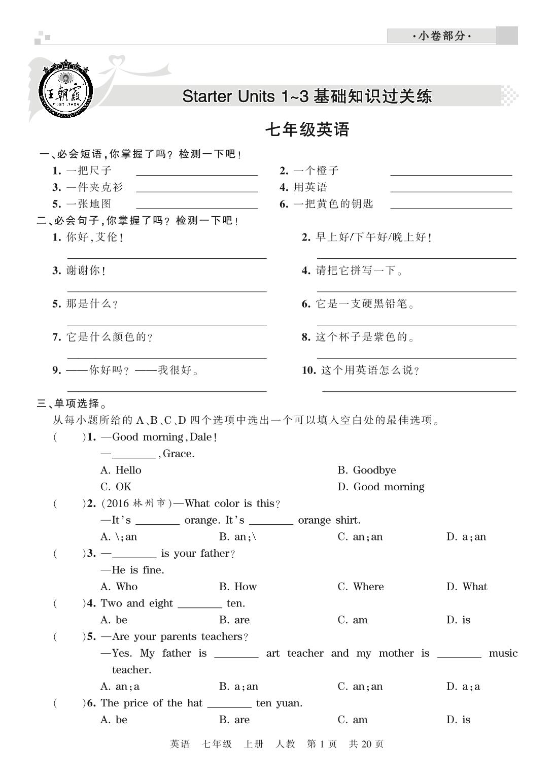 王朝霞期末小卷——基础知识过关练七年级上册英语(人教版)_R210807215315【0】