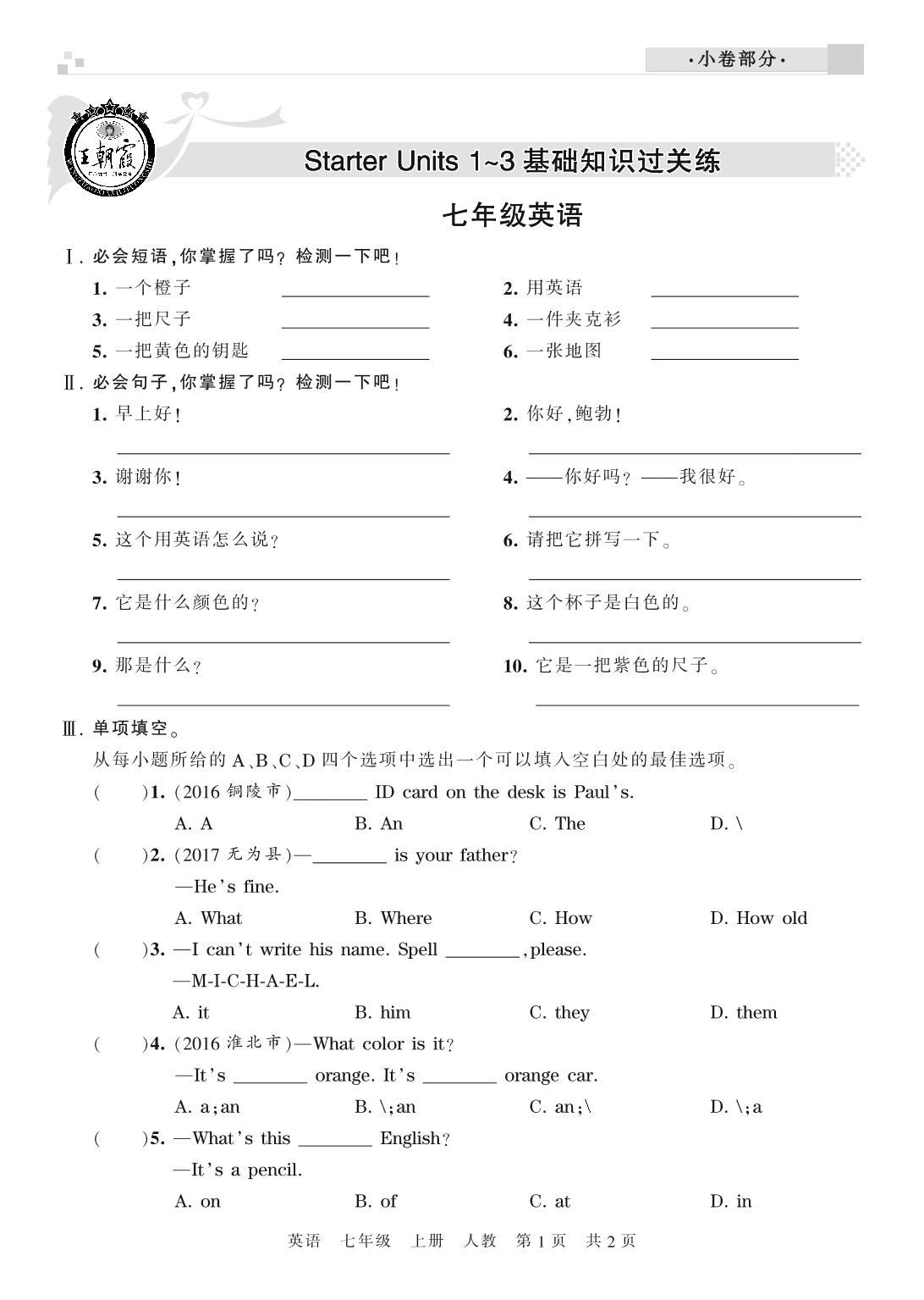 王朝霞期末小卷——基础知识过关练七年级上册英语(人教版)_R210807220001【0】