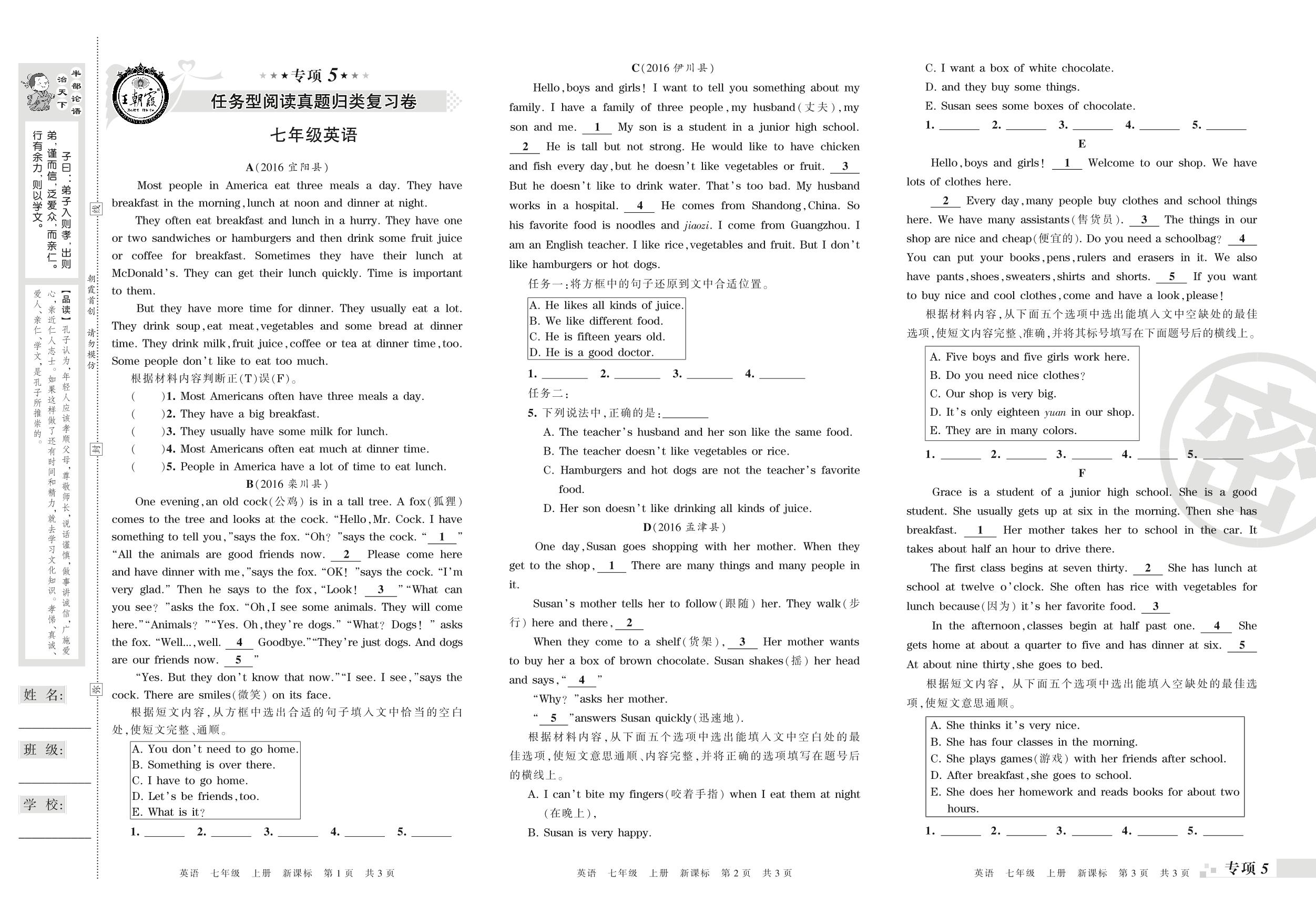 王朝霞期末专项卷——任务型阅读、词语运用真题归类复习卷七年级上册英语(新课版)_R210807220203【0】