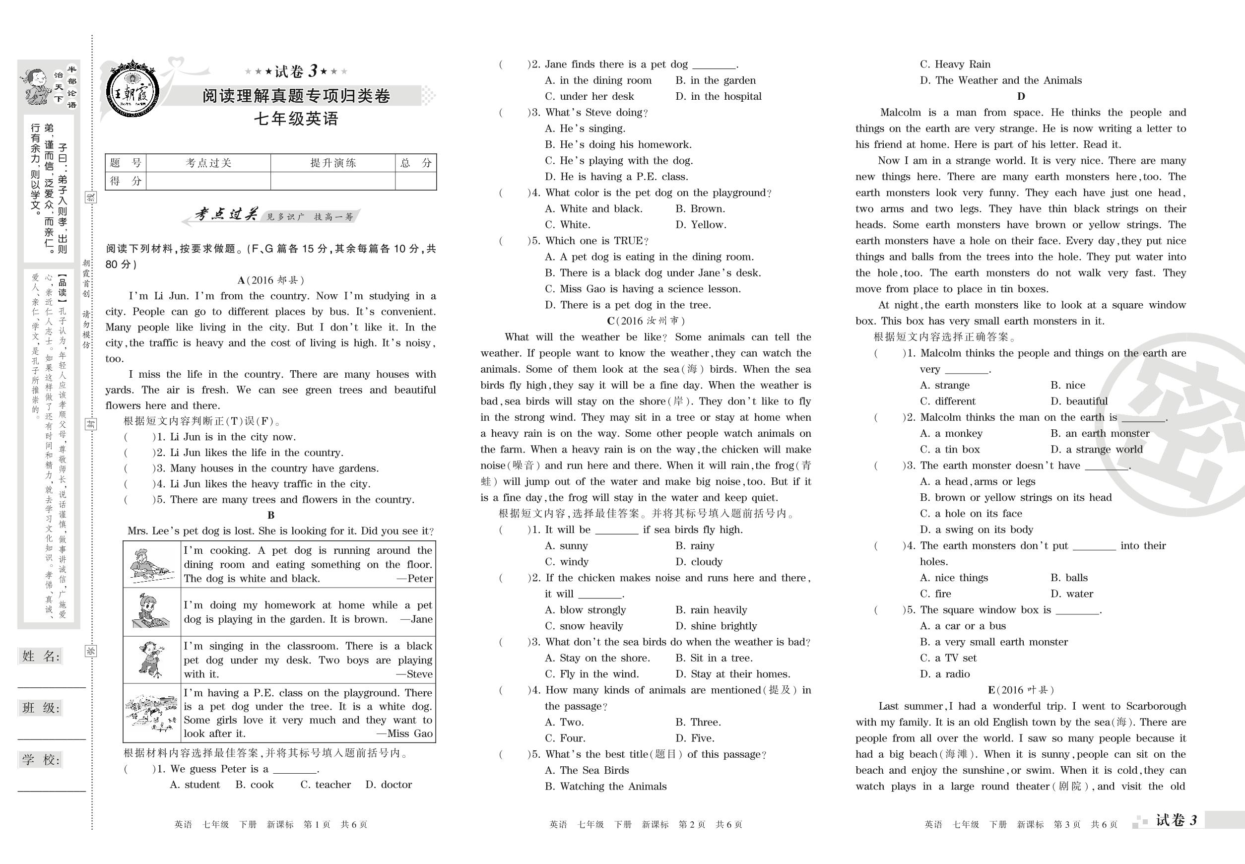 王朝霞期末专项卷——阅读理解真题专项归类卷七年级下册英语(新课版)【3】